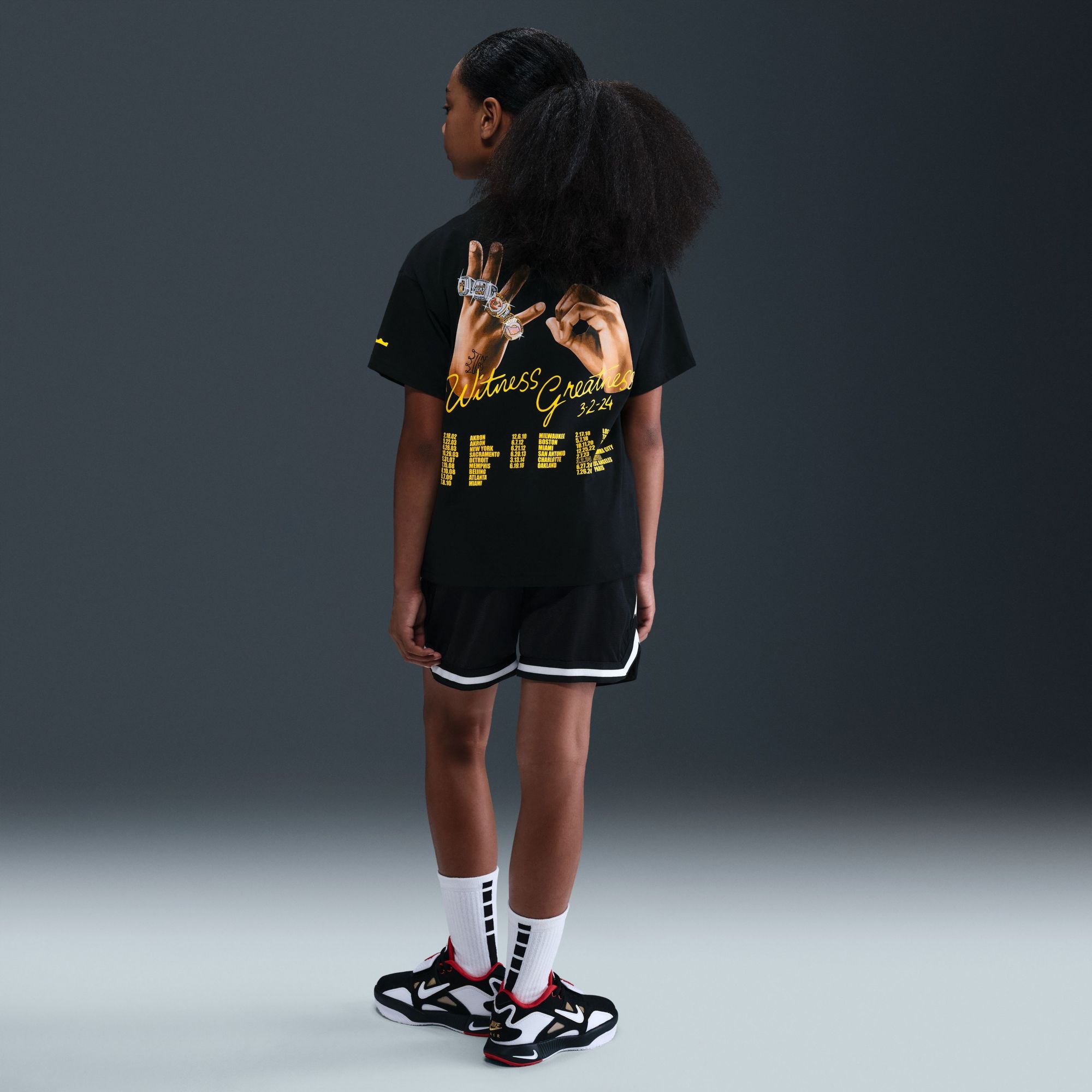 How many players can say they’re in the 40K point club? Just one—King James. This roomy midweight tee celebrates his stand-alone status as the greatest scorer of all time. It salutes Bron's longevity and sustained excellence because when you step into uncharted territory it’s best to show up prepared.