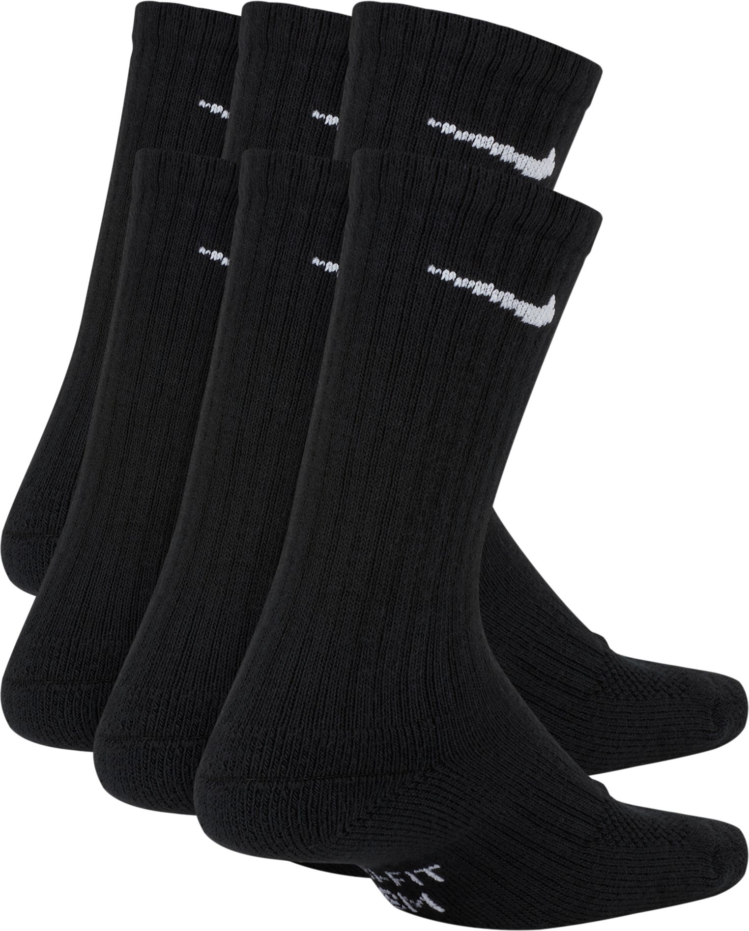 Your little one can take the court or field by storm in the Nike® Kids’ Performance Cushioned Crew Training Socks - 6 Pack. These socks feature sweat-wicking technology for moisture management and zonal cushioning for comfort with every step. Engineered with Lycra® spandex that is twice as thick as previous versions, providing your superstar with an extra comfy fit.