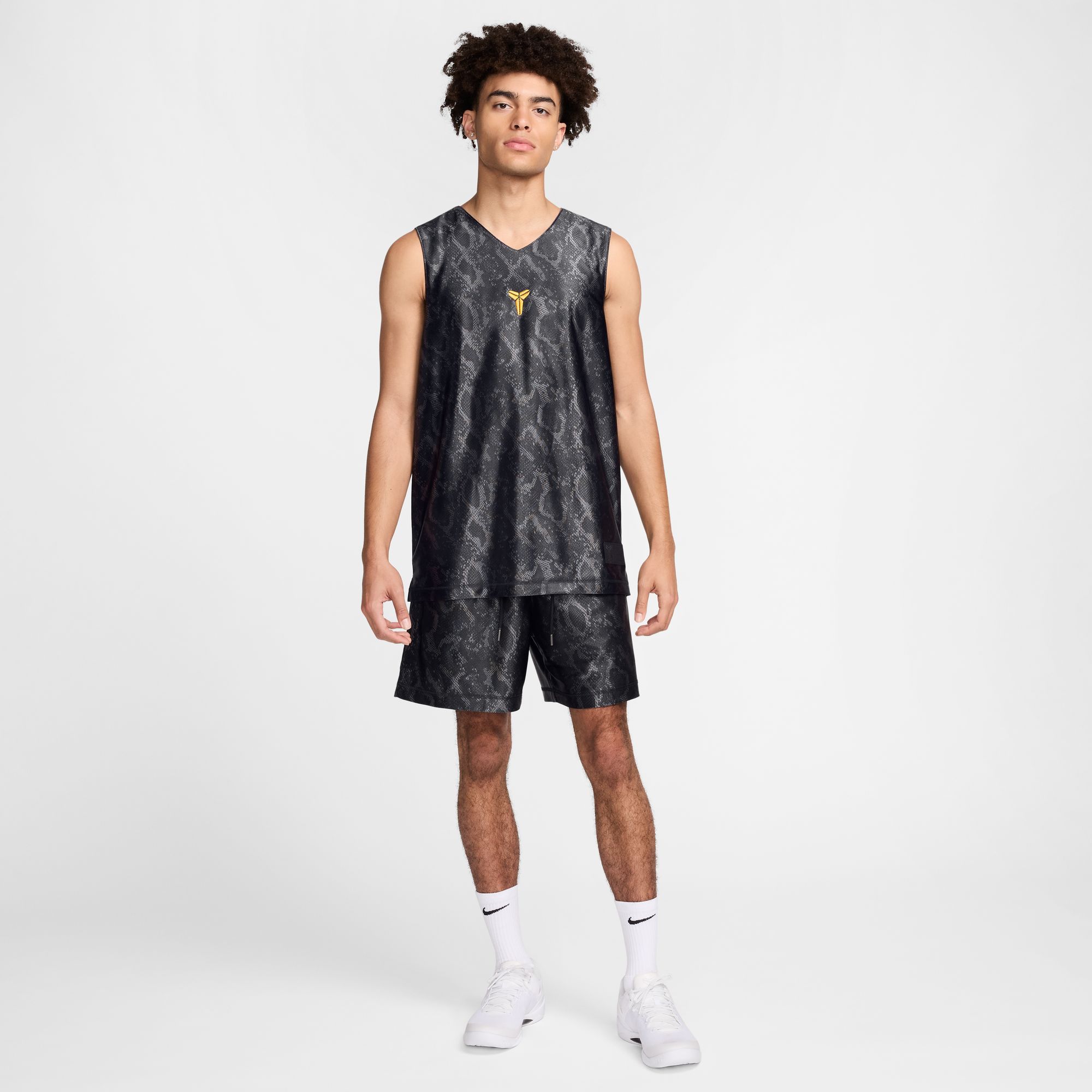 A sweat-wicking jersey that lets you switch up your style. One side has breathable mesh to keep you cool, the other side is a smooth knit with Mamba-themed graphics.