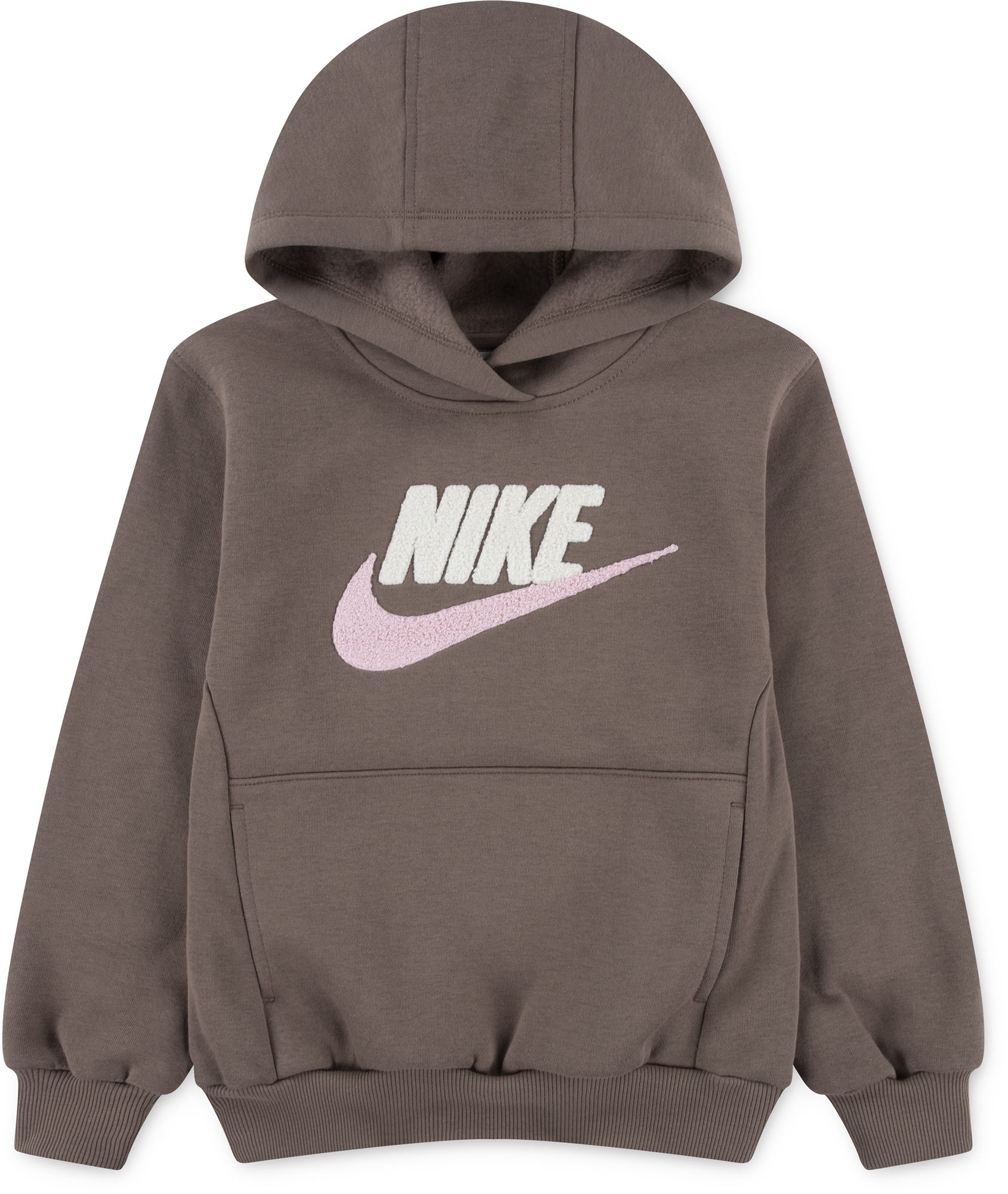 The Nike Club Chenille Pullover Hoodie provides comfort and a classic look for your kiddo. With its soft fleece fabric, chenille logo, and comfortable design, this hoodie is perfect for everyday wear.