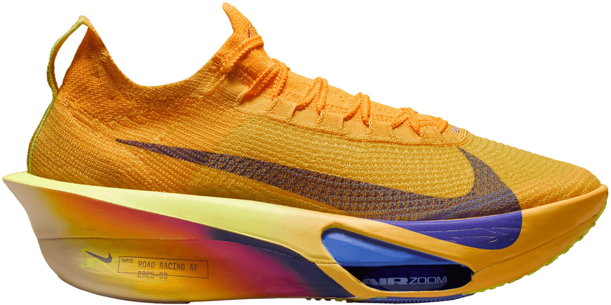 Fine-tuned for marathon speed, the Alphafly 3 helps push you beyond what you thought possible. Three innovative technologies power your run: A double dose of Air Zoom units helps launch you into your next step; a full-length carbon fiber plate helps propel you forward with ease; and a heel-to-toe ZoomX foam midsole helps keep you fresh from start to 26.2. Time to leave your old personal records in the dust.