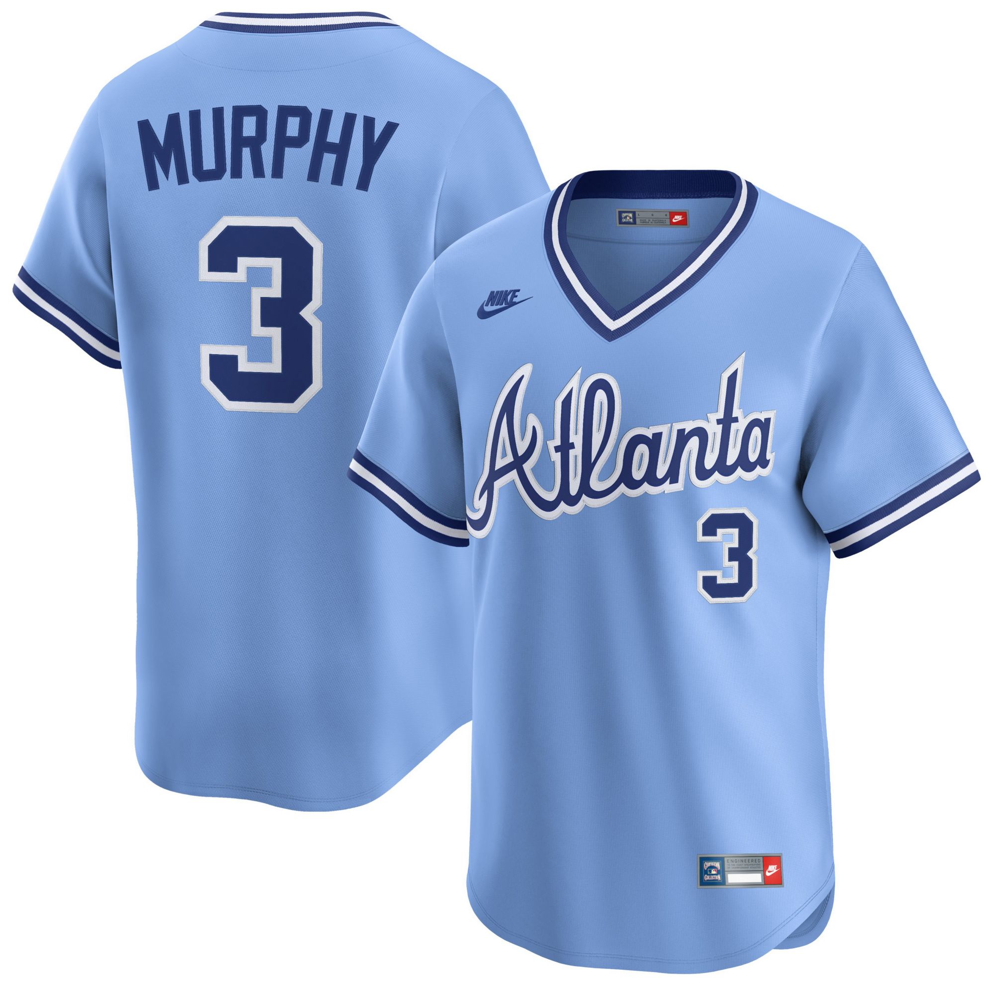 I like these throwback jerseys, however, they are slightly overpriced. The materials on this particular Dale Murphy jersey are lightweight, breathable and nice fitting. Attractive piping but only the Nike logo is truly stitched. I would love this at $125. At $175 it’s not really worth the money, but that’s just my opinion! It’s a very nice looking jersey, to be sure