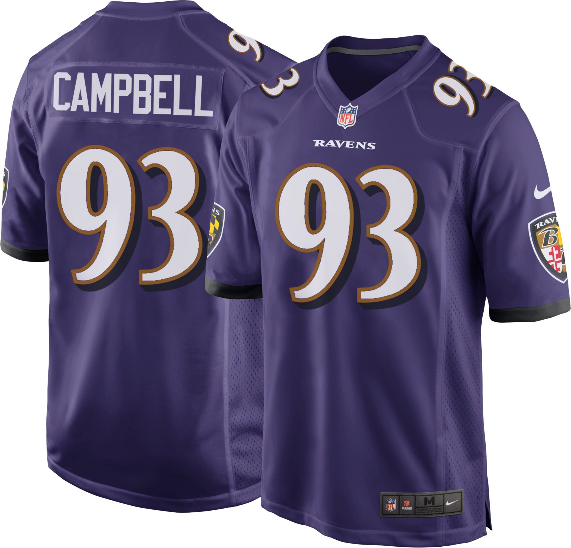 Celebrate your star pass rusher as he chases down quarterbacks on game days with the Nike® Baltimore Ravens Calais Campbell #93 Home Game Jersey.