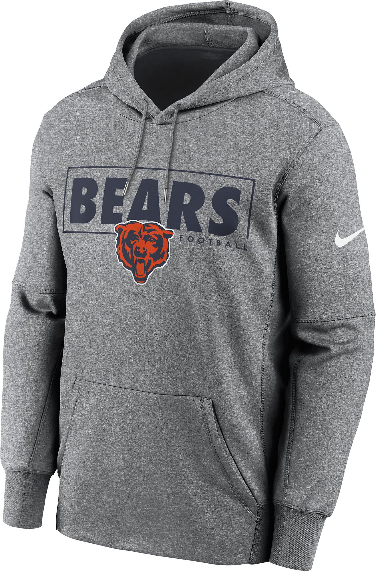 Nike Men's Chicago Bears Left Chest Therma-FIT Grey Hoodie