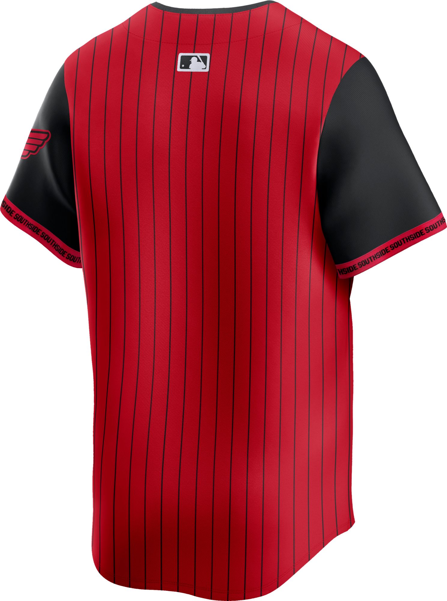 Show your team pride with the Nike Men's Chicago White Sox 2025 City Connect Limited Vapor Jersey. Designed with authentic decoration and trim, this short sleeve, button-front jersey is made of recycled polyester and features stretch mesh gussets under the arms for enhanced range of motion. Stay cool and comfortable with integrated Dri-FIT® moisture-wicking technology, while showcasing your team spirit with the heated Seal Twill team logo and official MLB® batter man logo.