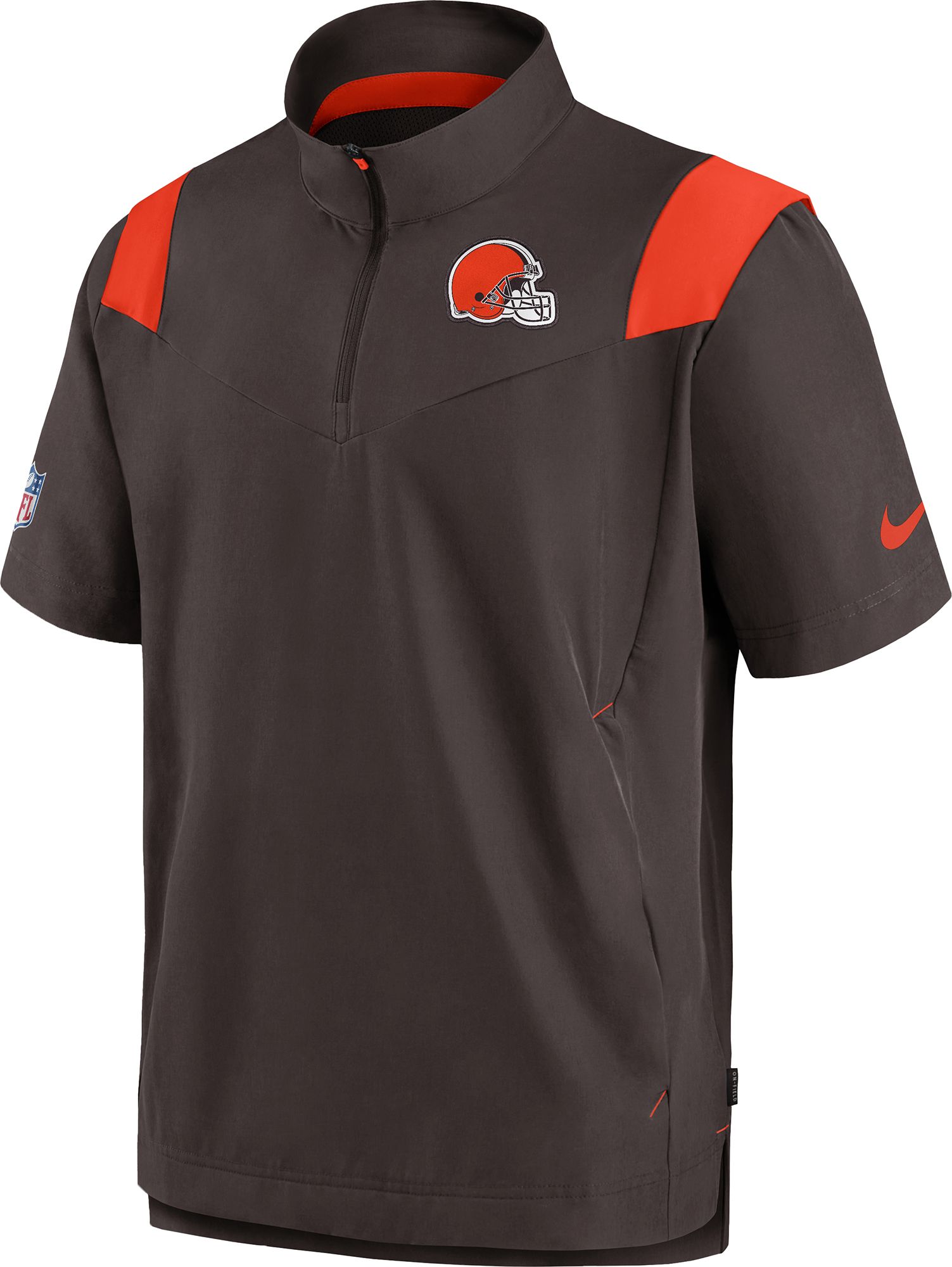 Nike Men's Cleveland Browns Sideline Coaches Short Sleeve Brown Jacket