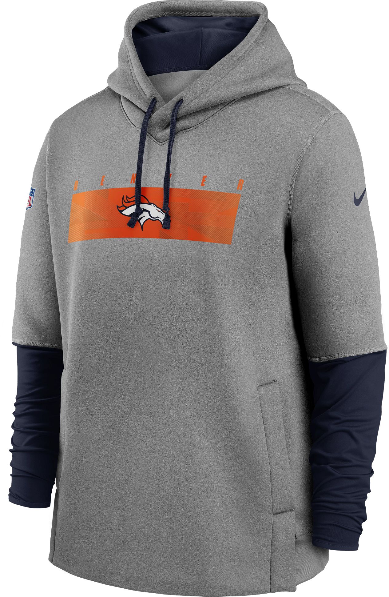 Nike Men's Denver Broncos Grey Sideline Therma-FIT Heavy Hoodie