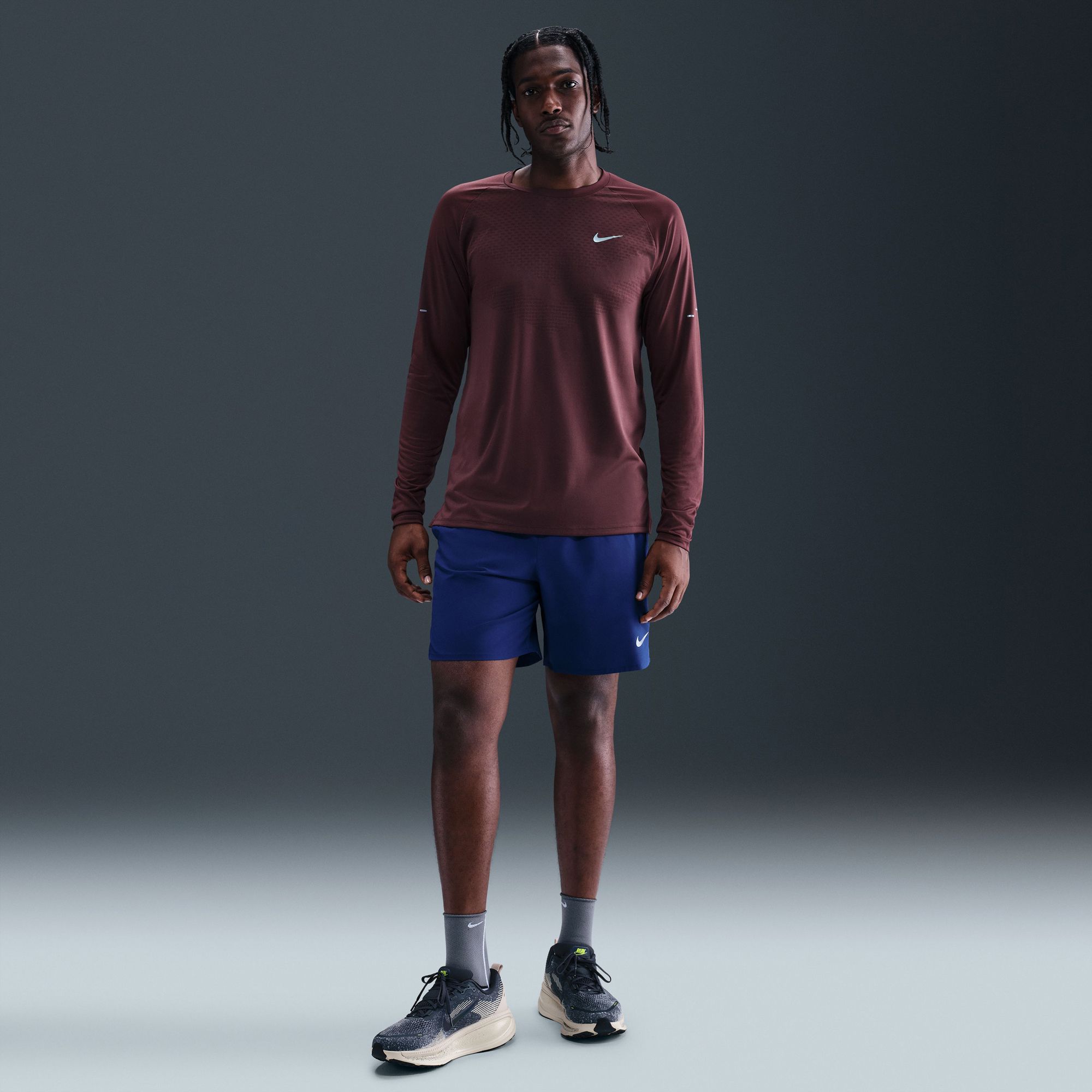 Slim Fit but similar to other running shirts of nike. Not necessarily warm but good long sleep alternative for running