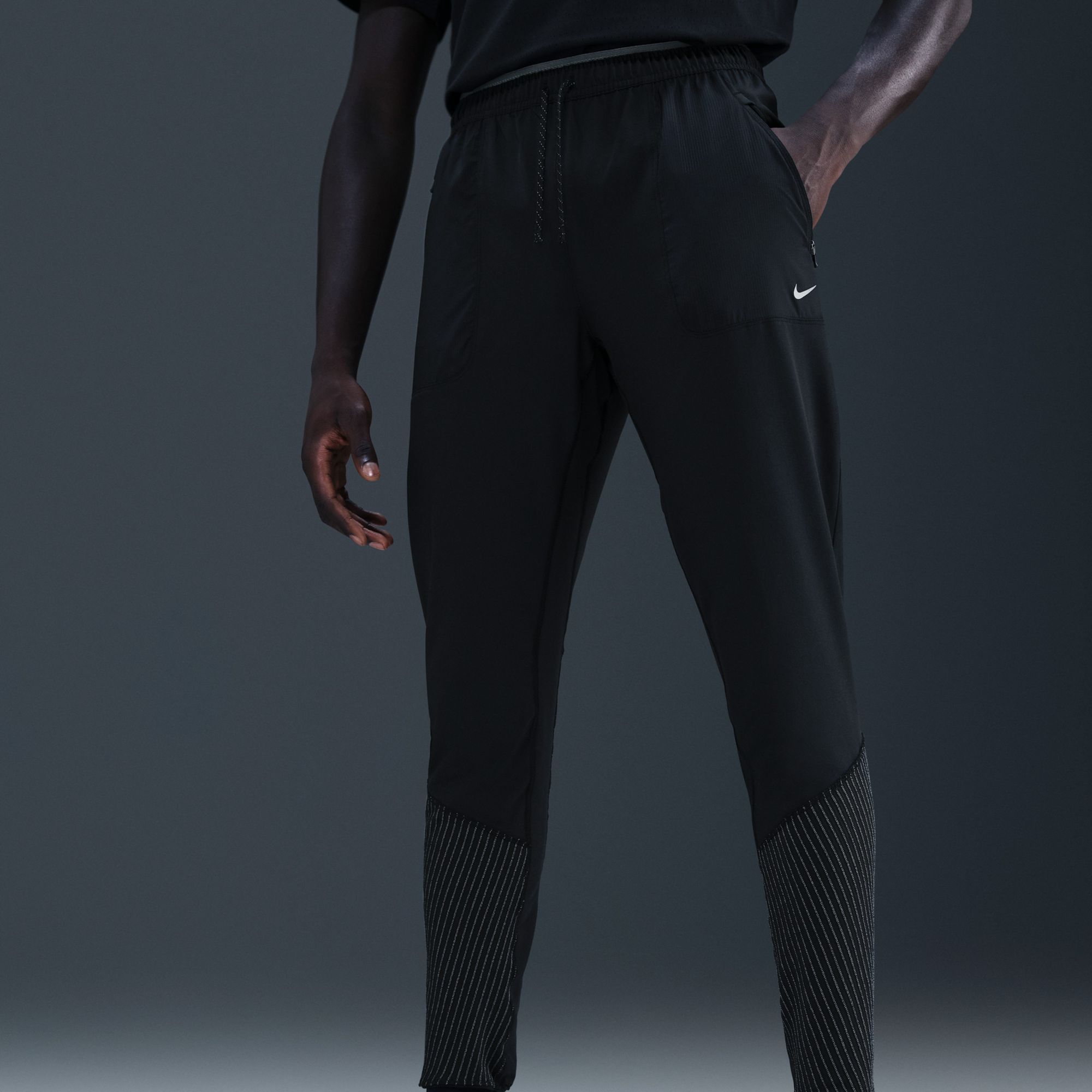 Run your route day or night. These woven pants feature four-way stretch fabric and sweat-wicking tech. We added reflective details to glow up your gear and zippered side pockets to secure your essentials. Waistband combines elastic and mesh for a breathable, snug feel.