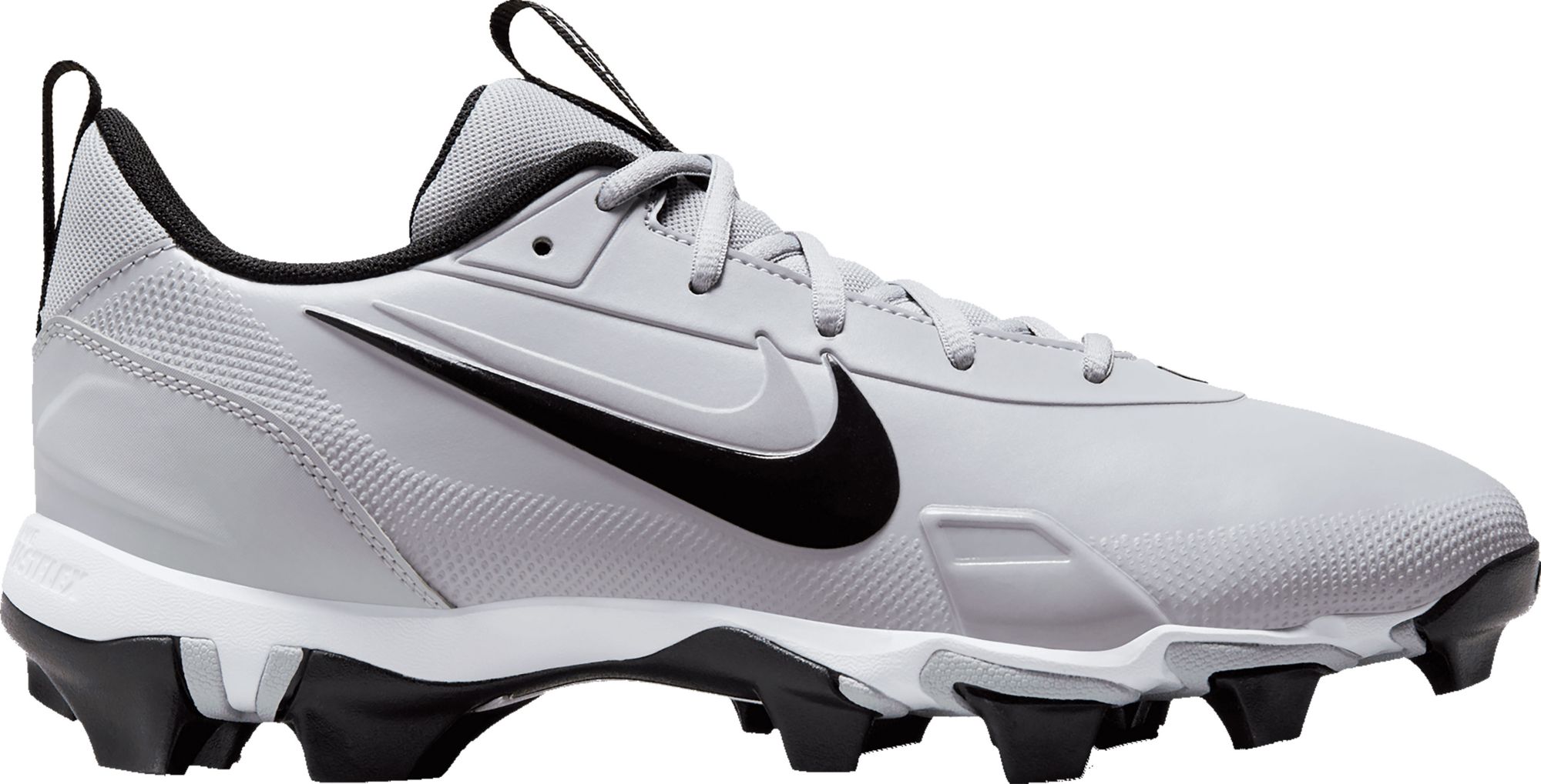 The synthetic upper has a durable mesh that’s easy to clean. Overlay at the toe adds durability for hitting and pitching