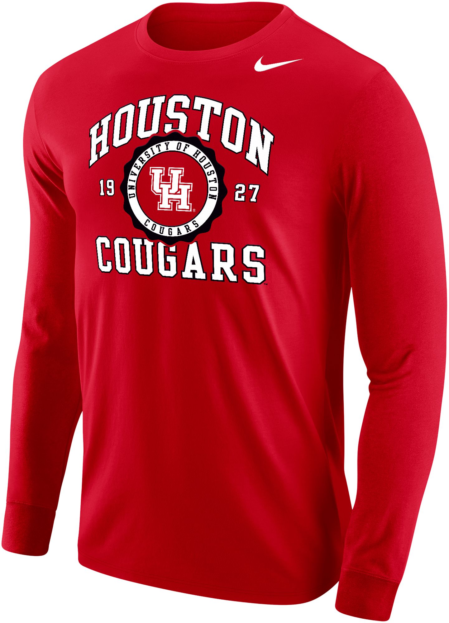 Nike Men's Houston Cougars Red Core Cotton School Seal Long Sleeve T-Shirt