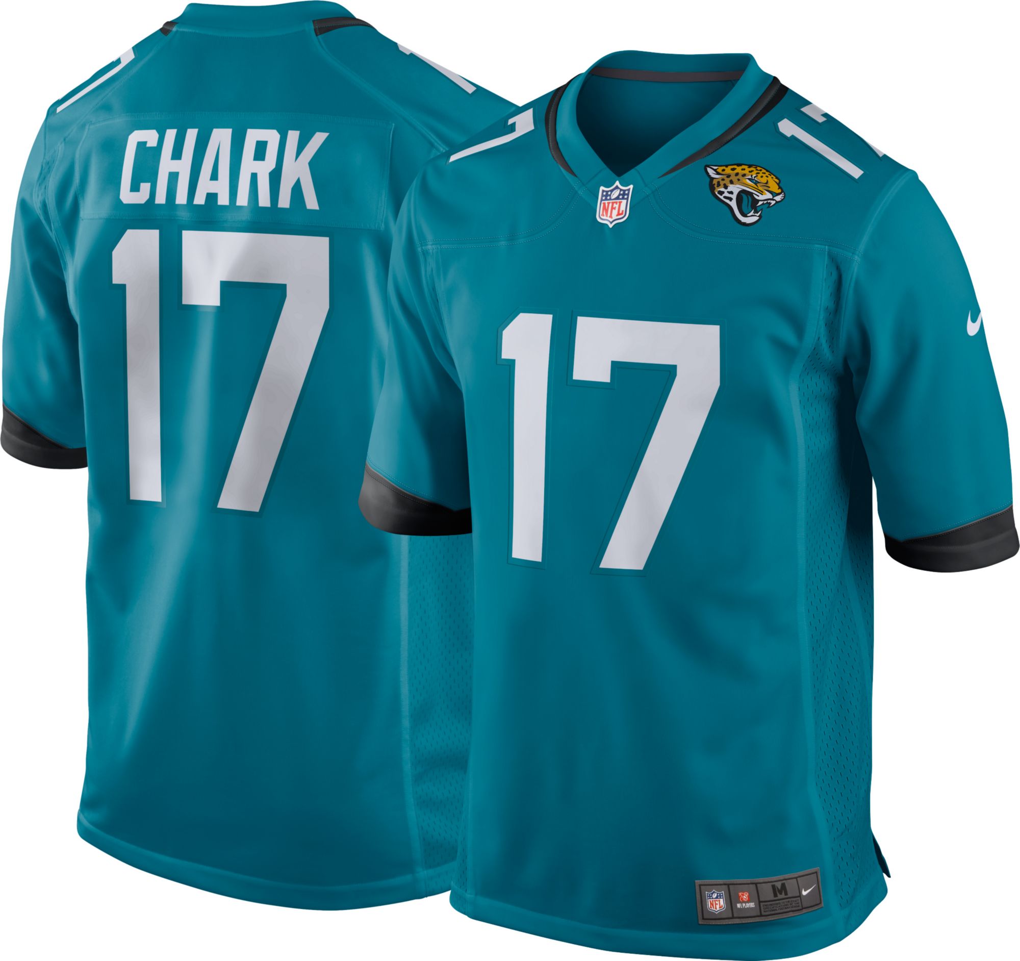 Gear up for the highlight reel! Celebrate every Jags touchdown by emulating their big play wideout with the Nike® Jacksonville Jaguars DJ Chark #17 Alternate Game Jersey.