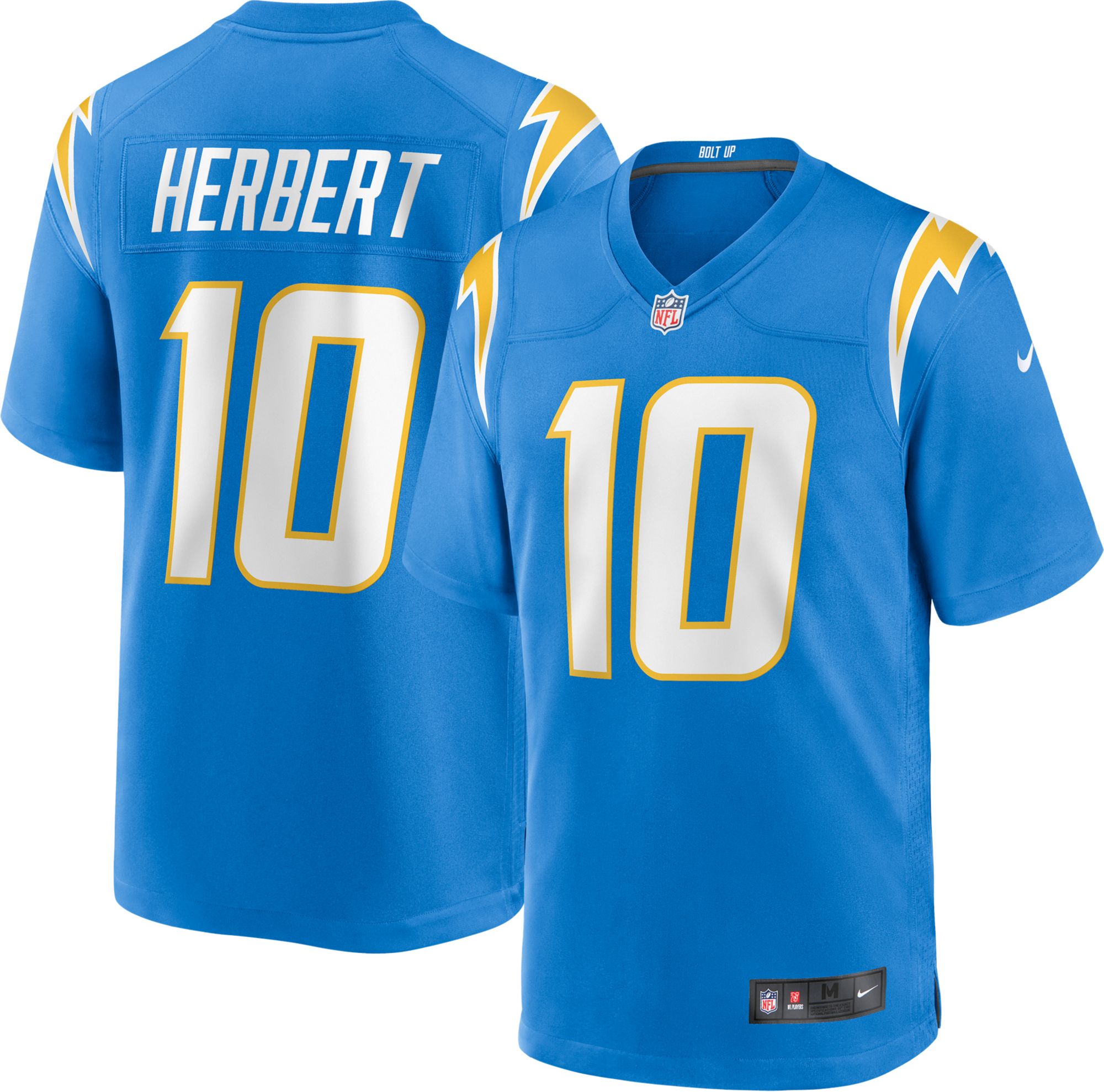 The Chargers are driving the field! Gear up for game days and cheer on your team in style and comfort with the Nike® Los Angeles Chargers Justin Herbert #10 Home Game Jersey.