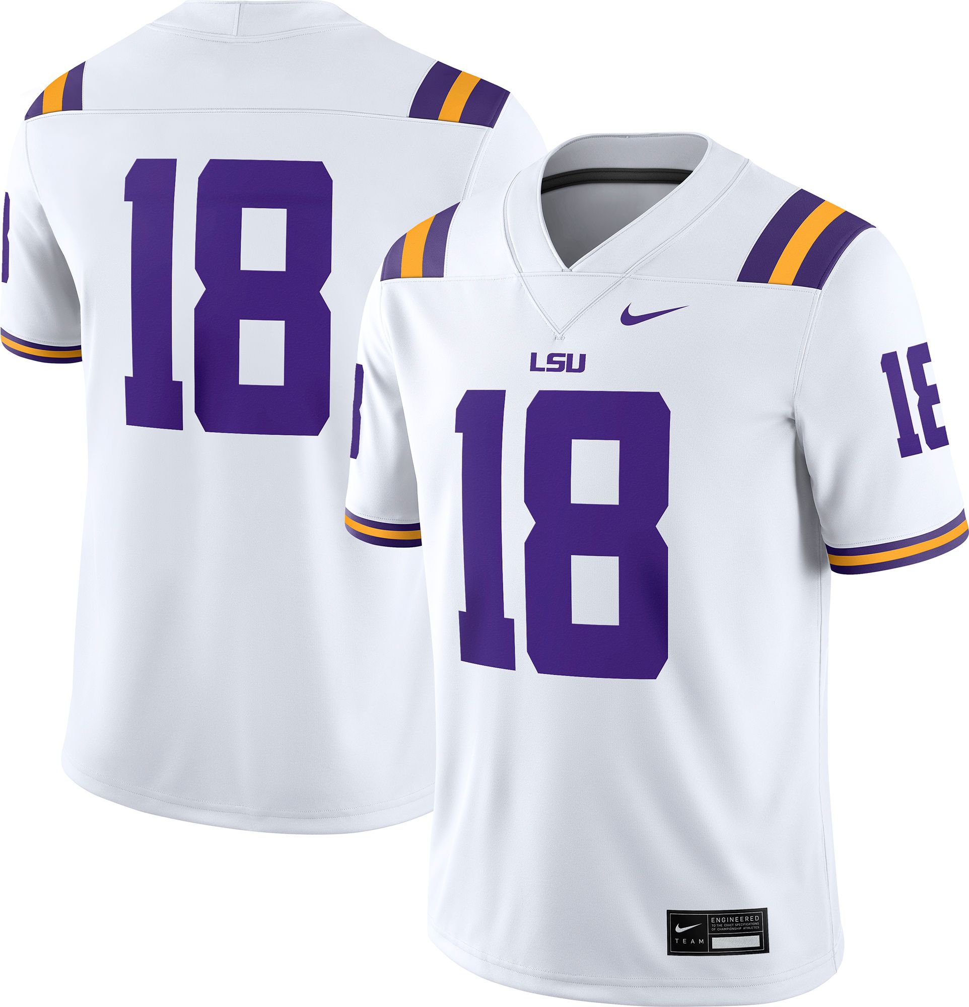 Nike Men's LSU Tigers #18 White Dri-FIT Replica Football Game Jersey
