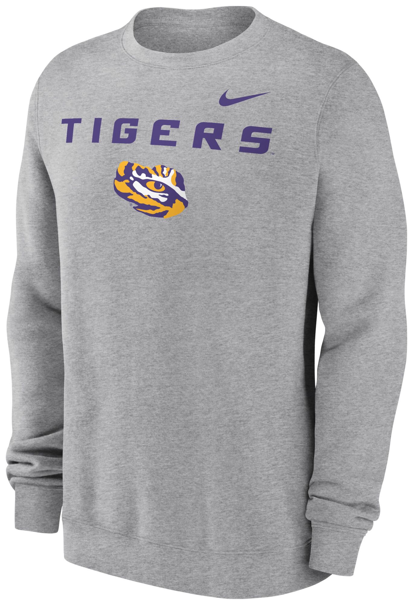 Nike Men's LSU Tigers Dark Grey Heather Club Fleece Wordmark Crew Neck Sweatshirt