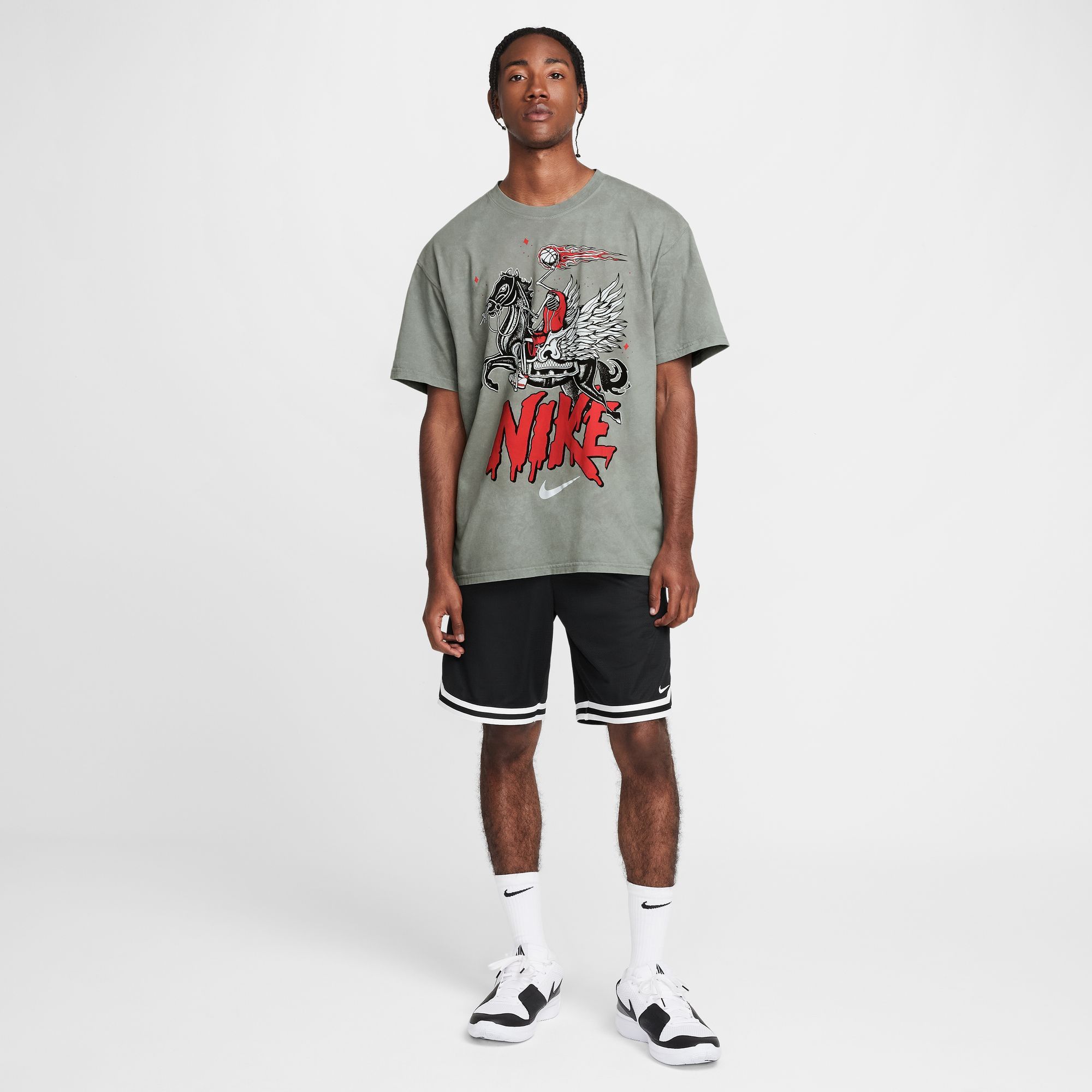 Inspired by vintage hoops clothing with skeletal graphics, semi-transparent ink and lightly washed fabric, this tee restores what we loved from basketball's past