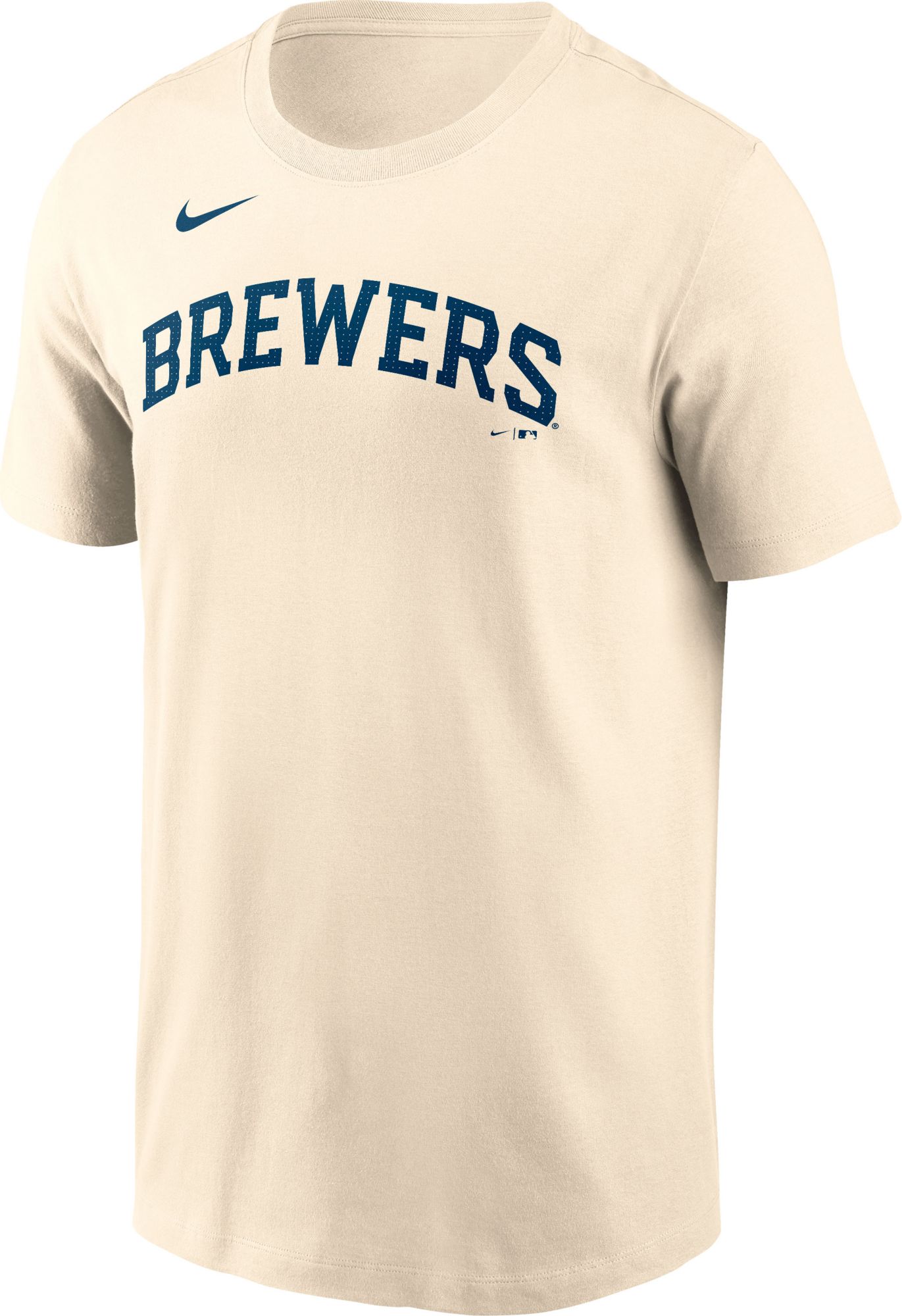 Nike Men's Milwaukee Brewers Tan Cotton Fuse Wordmark T-Shirt