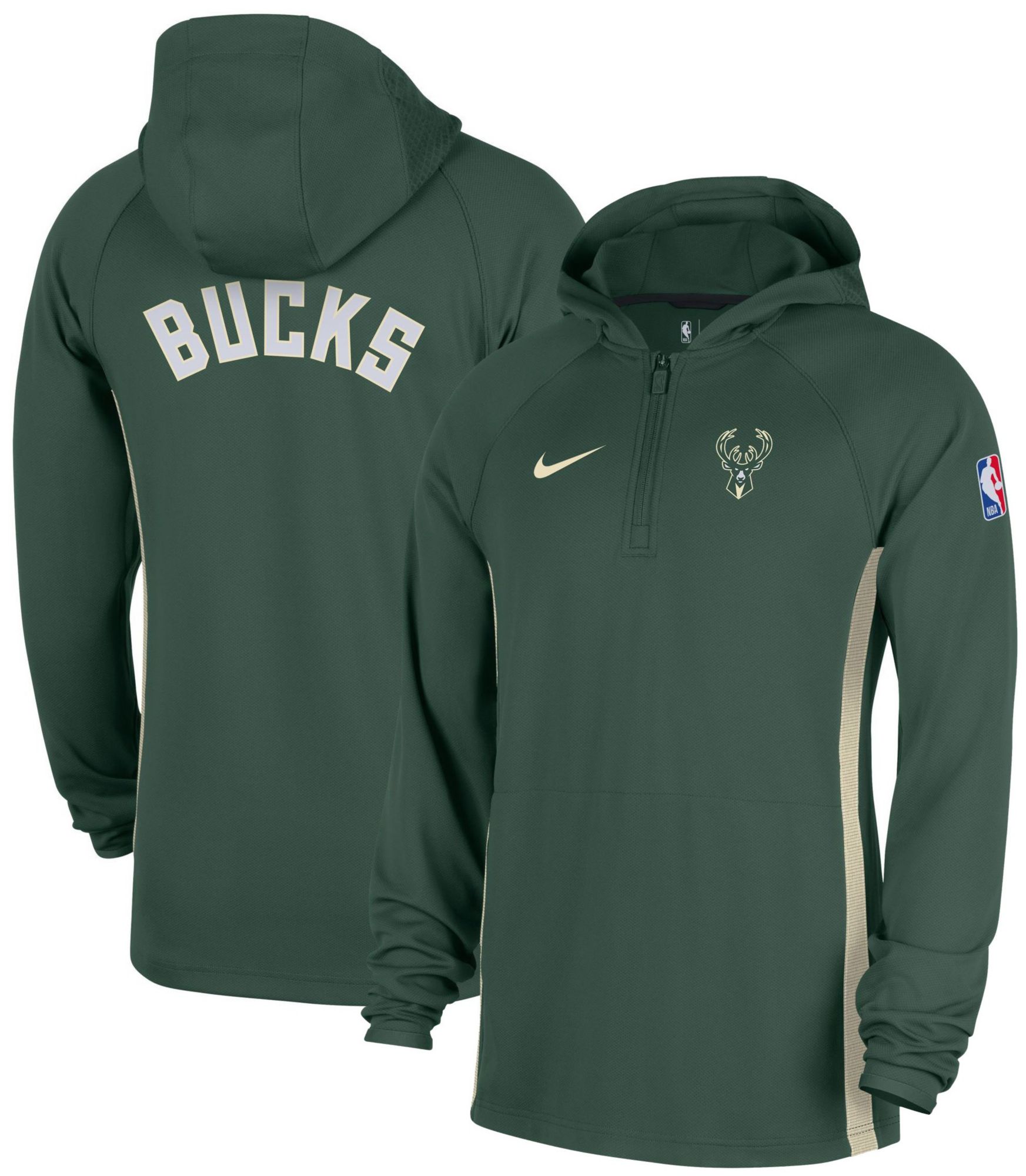 Nike Men's Milwaukee Bucks Green On Court Zone Warmup Quarter-Zip Hoodie