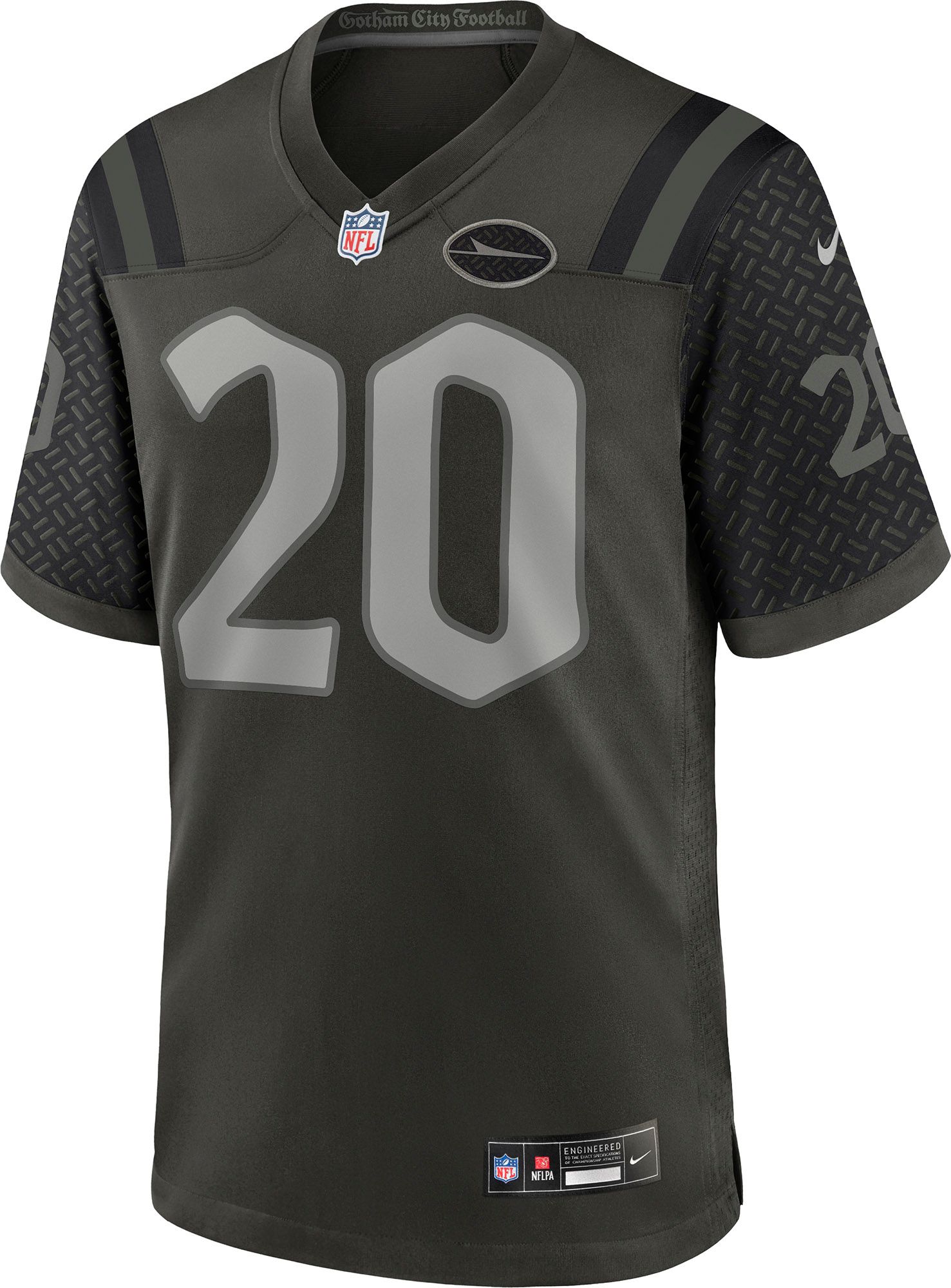 • Stitched down NFL Shield at the neckline