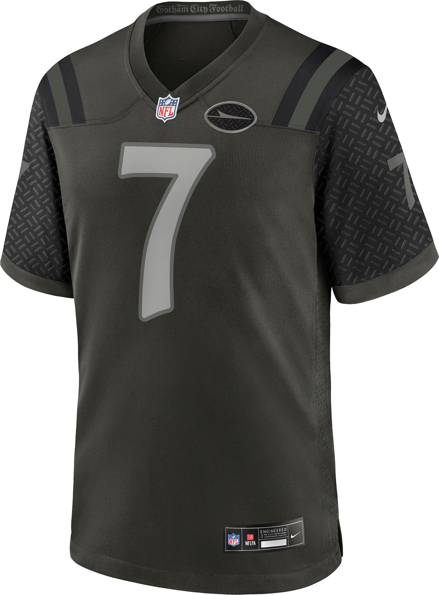 • Stitched down NFL Shield at the neckline
