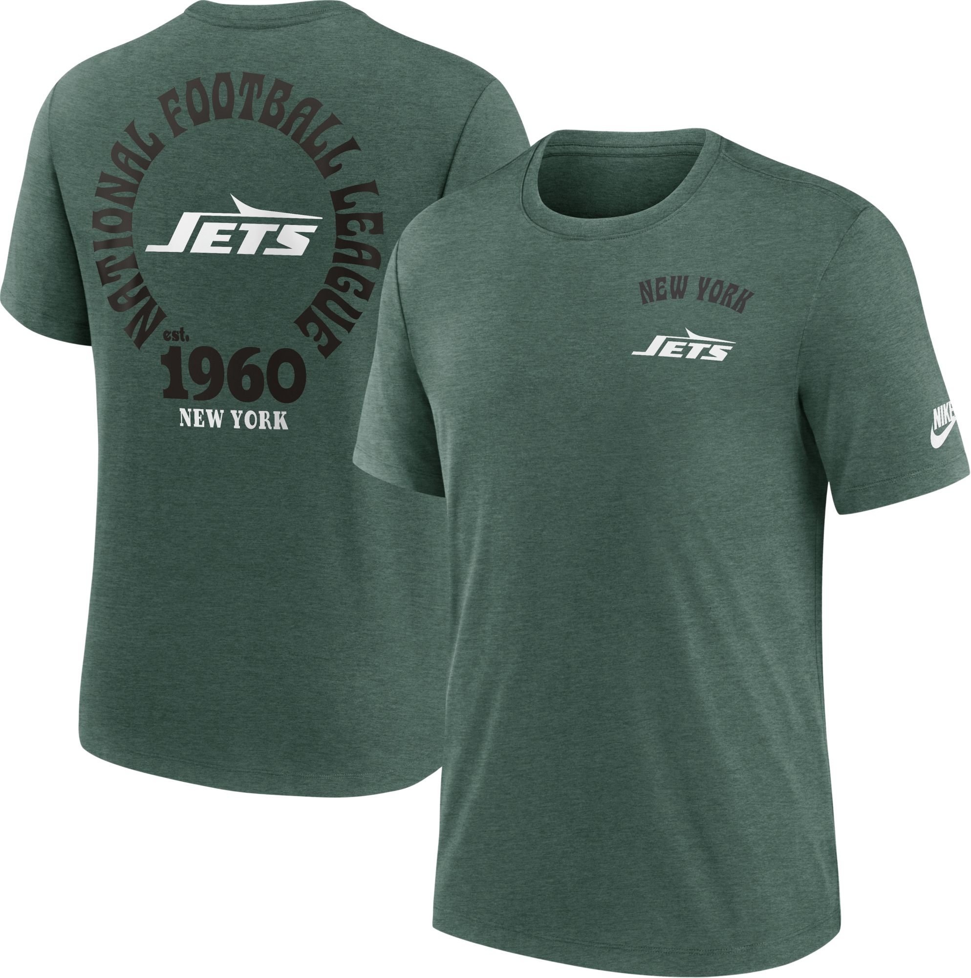 Nike Men's New York Jets Rewind Tri-Blend Green Heather T-Shirt