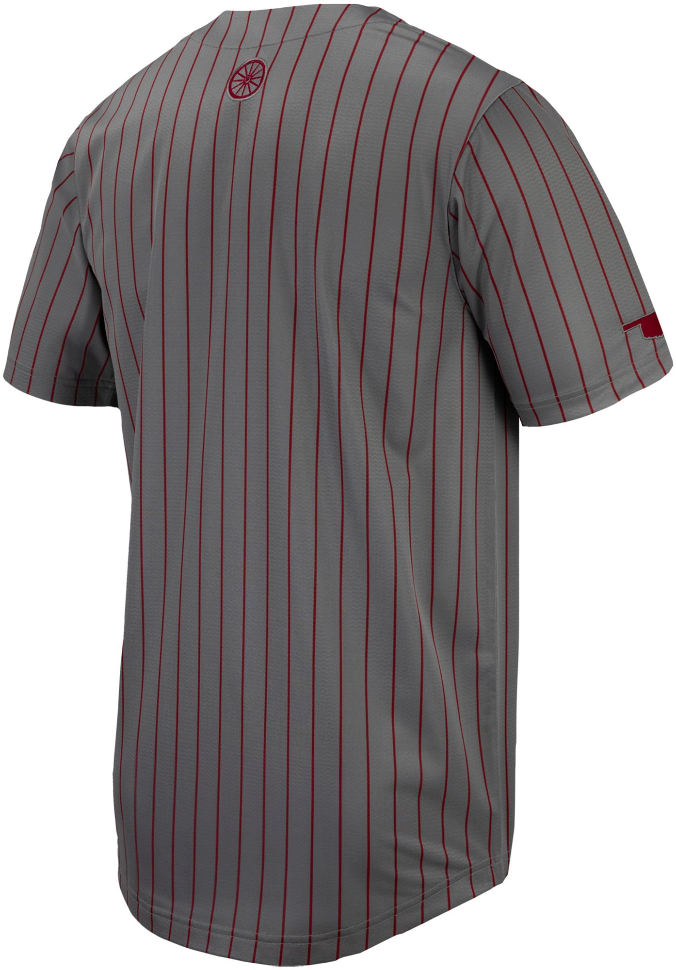 Nike Men's Oklahoma Sooners Grey Pinstripe Full Button Replica Baseball Jersey