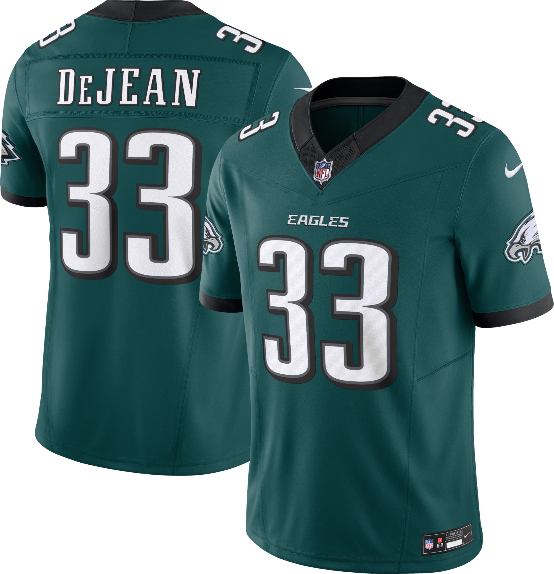 FYI- This is a Vapor FUSE jersey as seen in the photos even though it has the cheaper Game Jersey description. That mean the numbers aren’t screen printed- they are twill numbers/letters that are heat pressed onto the jersey and the jersey itself is a much higher quality than the cheaper one. I was worried I’d get the game jersey in spite of the price/photos because of the description of the jersey, but got this during the Memorial Day sale and with the $20 off plus a $10 reward I took the chance knowing I could return it. Very happy I was able to get a higher quality DeJean jersey- they don’t have them on Fanatics currently.