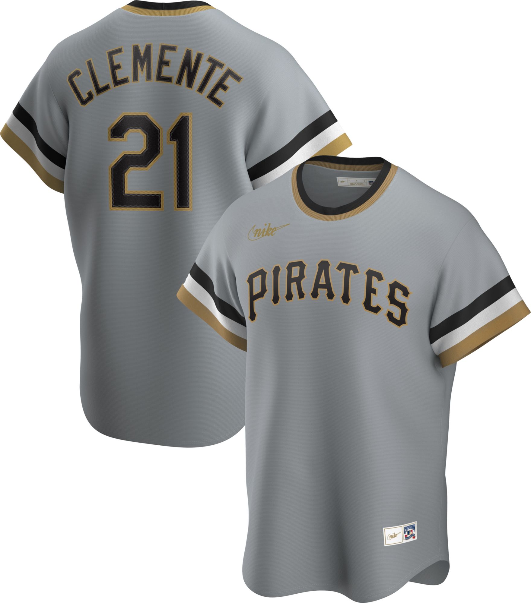 Remember the glory days of your favorite Pirates players in history in the Men’s Nike® Pittsburgh Pirates Roberto Clemente #21 Cooperstown V-Neck Pullover Jersey.