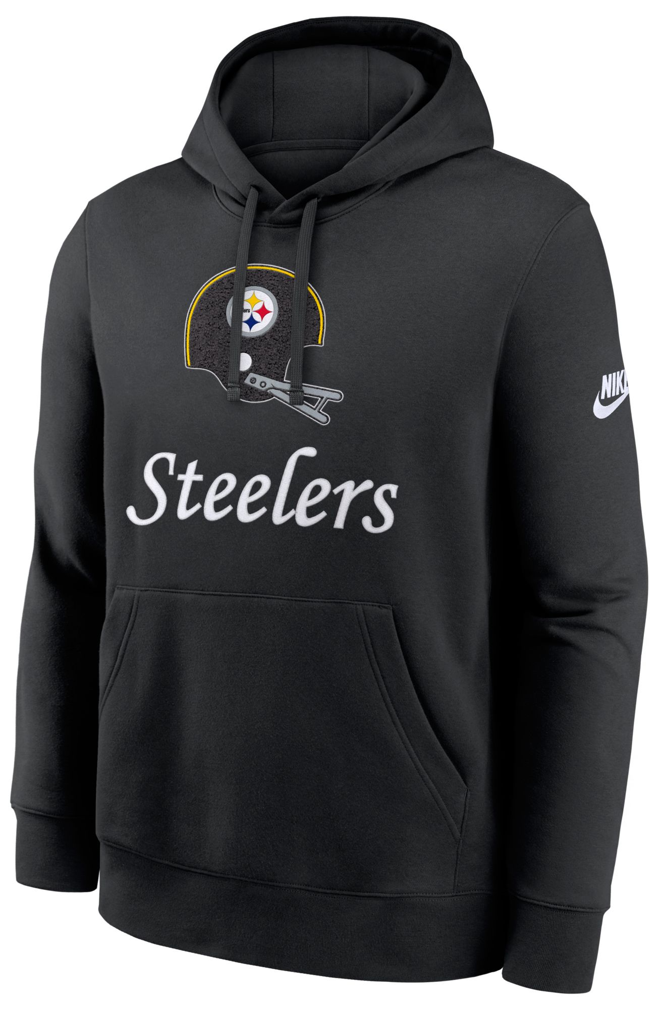 I bought this retro Steelers sweatshirt hoodie for my brother's birthday and he absolutely loves it. He's a huge Steelers fan since the early 70s and the 2 bar face mask brings back memories of the great Steelers teams of that era. He stated the fit is perfect and true. Highly recommend this hoodie.