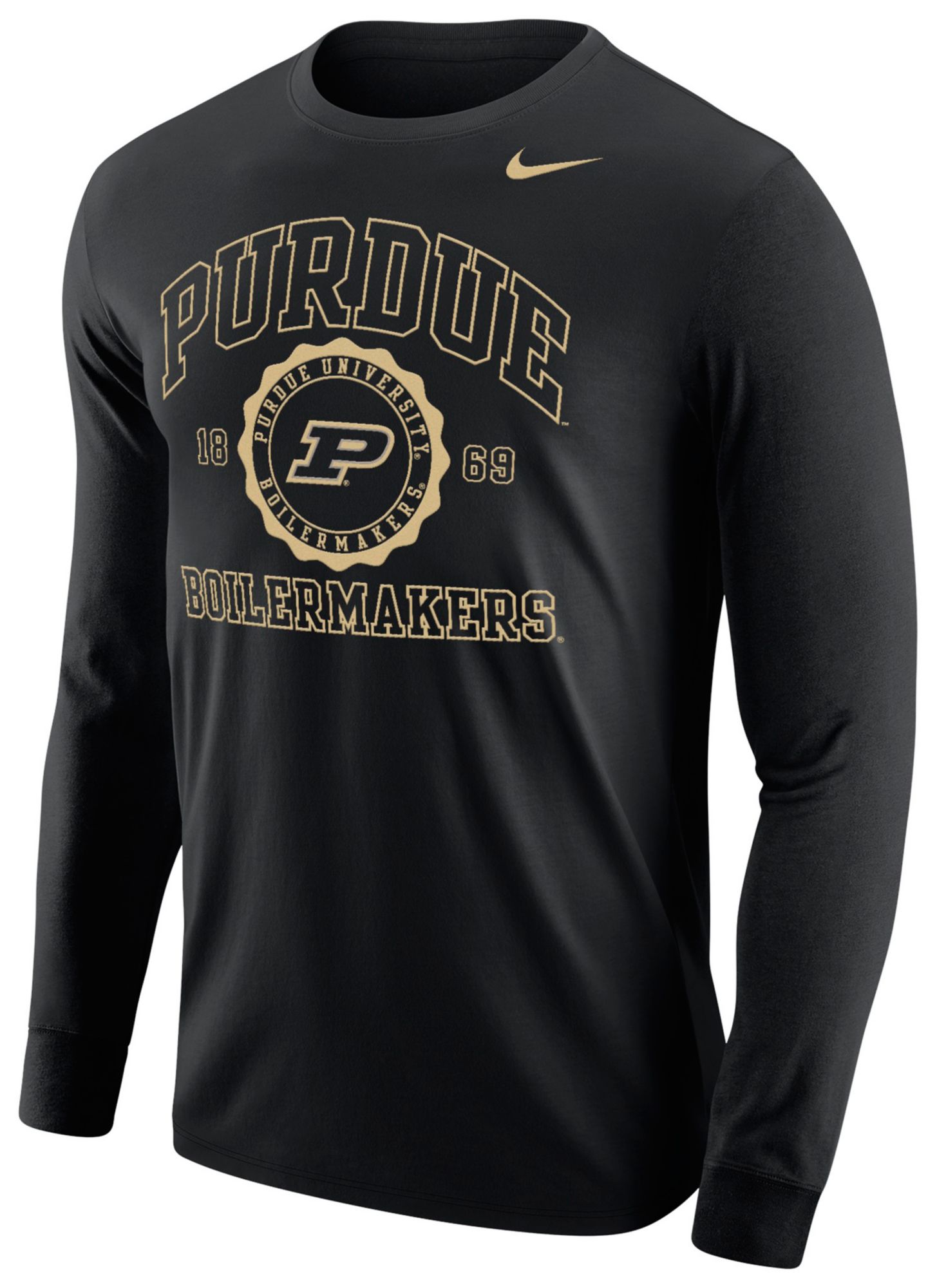 Nike Men's Purdue Boilermakers Black Core Cotton School Seal Long Sleeve T-Shirt