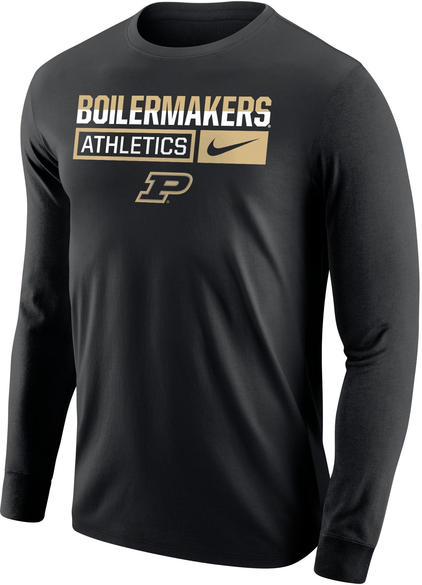 Nike Men's Purdue Boilermakers Black Core Cotton Wordmark Long Sleeve T-Shirt