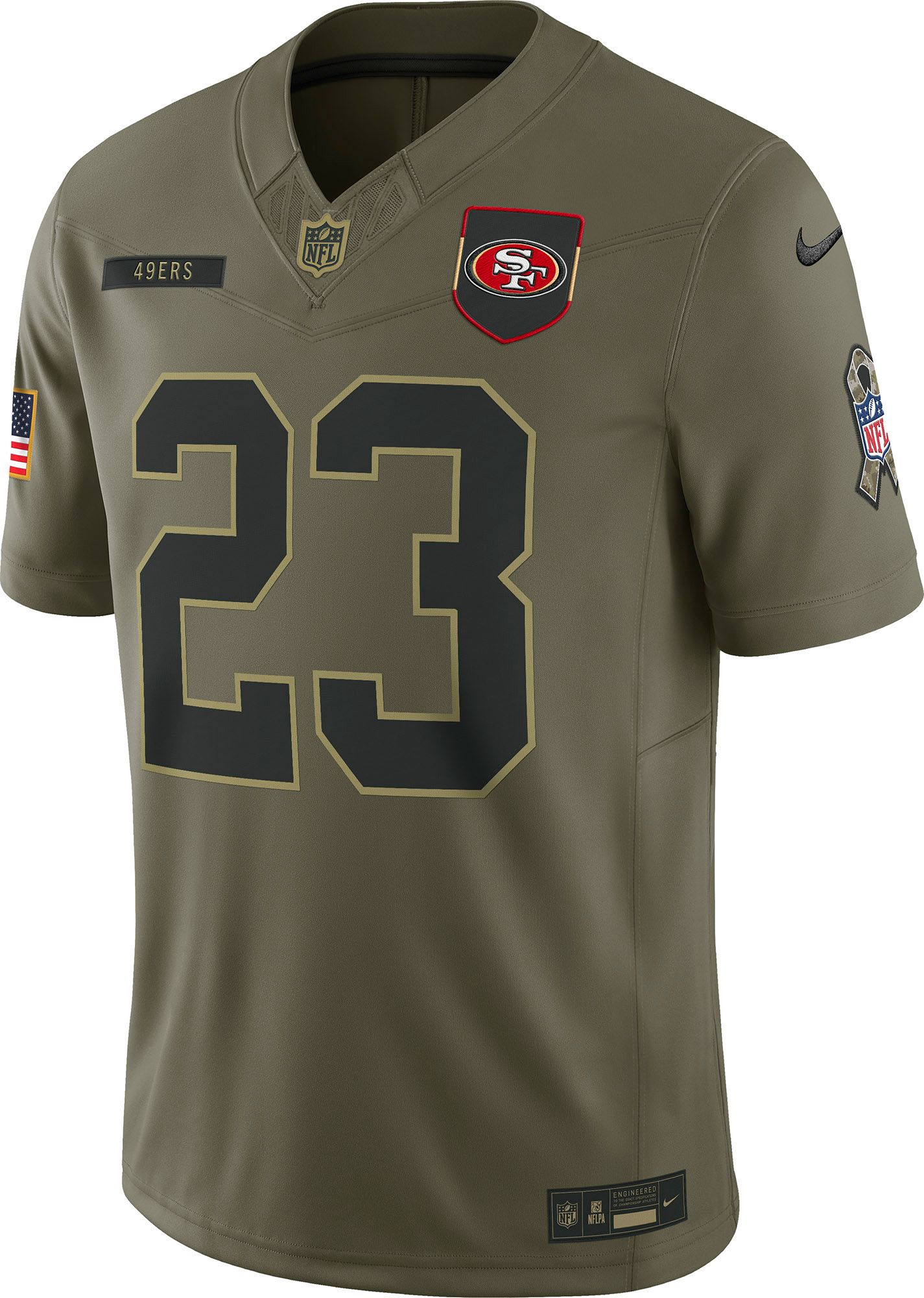 Nike Men's San Francisco 49ers Christian McCaffrey #23 Olive Salute to Service Limited Jersey