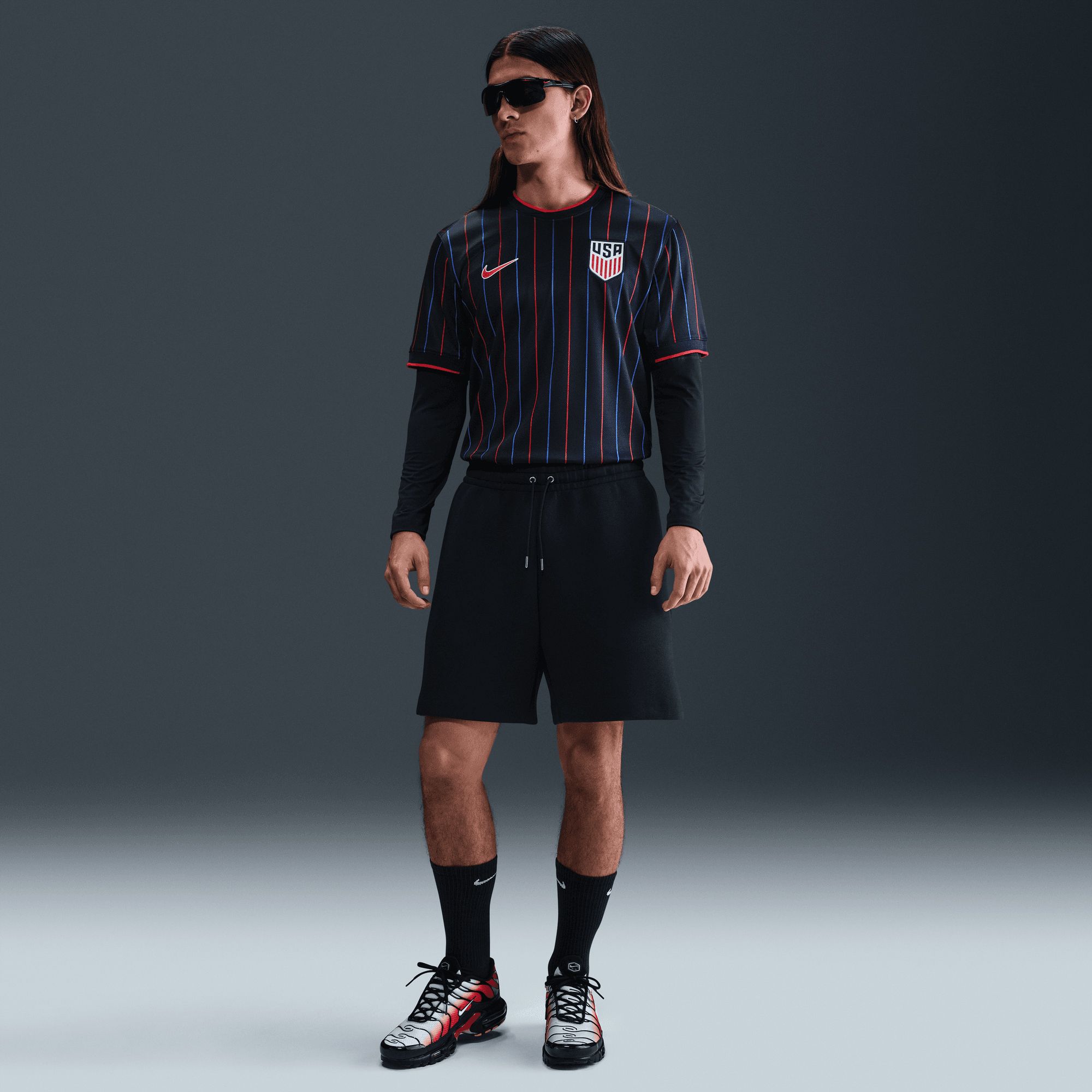 Since 1985, the USWNT has been the guiding light for the future of the game. Celebrate four stars and 40 years of progress with the USMNT Away kit. The stripe graphic pulsating stardust embodies the radiant heartbeat of the team as they continue to inspire future generations. Inspired by the Pros: The Stadium collection pairs replica design details with sweat-wicking technology to give you a game-ready look inspired by your favorite team.