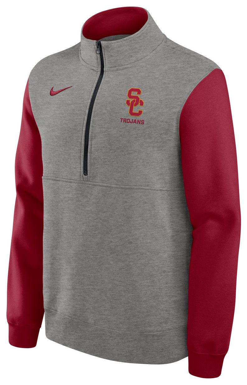 Nike Men's USC Trojans Dark Grey Heather Club Fleece Half-Zip