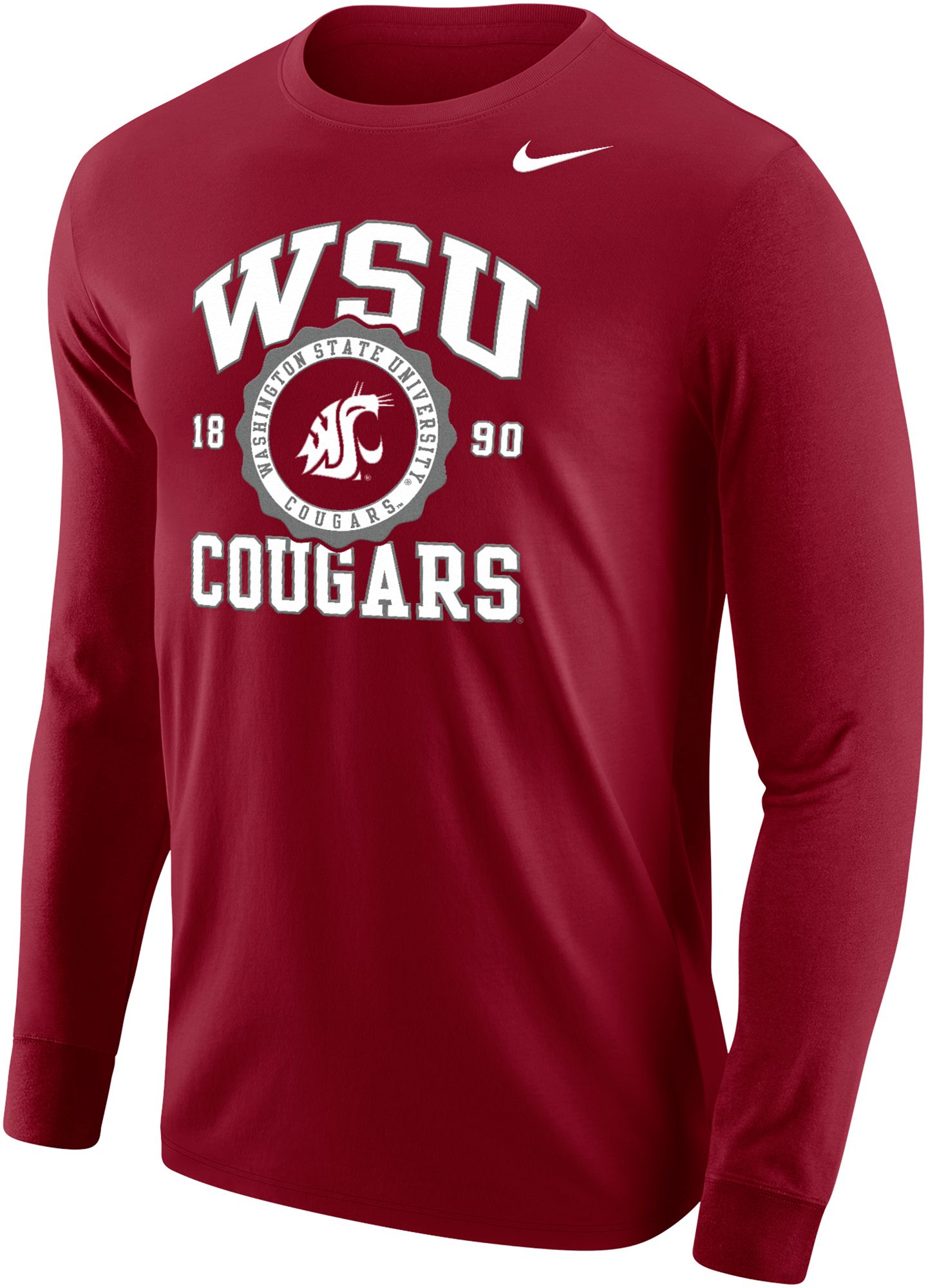 Nike Men's Washington State Cougars Crimson Core Cotton School Seal Long Sleeve T-Shirt
