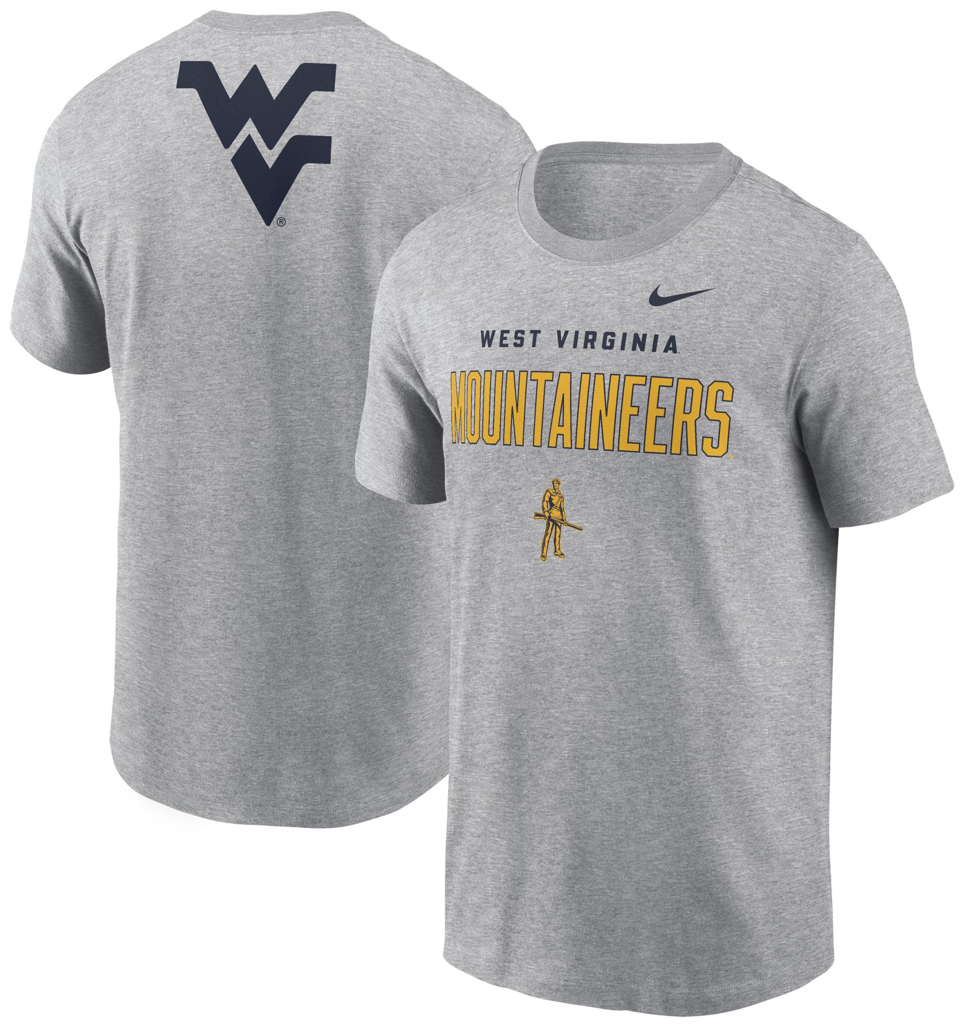 Nike Men's West Virginia Mountaineers Dark Grey Heather Double Hit Logo T-Shirt