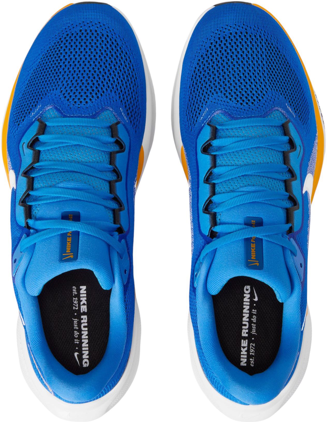 Experience the ultimate combination of comfort and performance with the men's Pegasus 41 running shoes. Featuring an upgraded breathable engineered mesh upper and an all-new ReactX foam midsole, these shoes are designed to provide an energized ride with increased breathability and reduced weight. The signature waffle-inspired rubber outsole ensures exceptional traction and flexibility, making them perfect for road running.