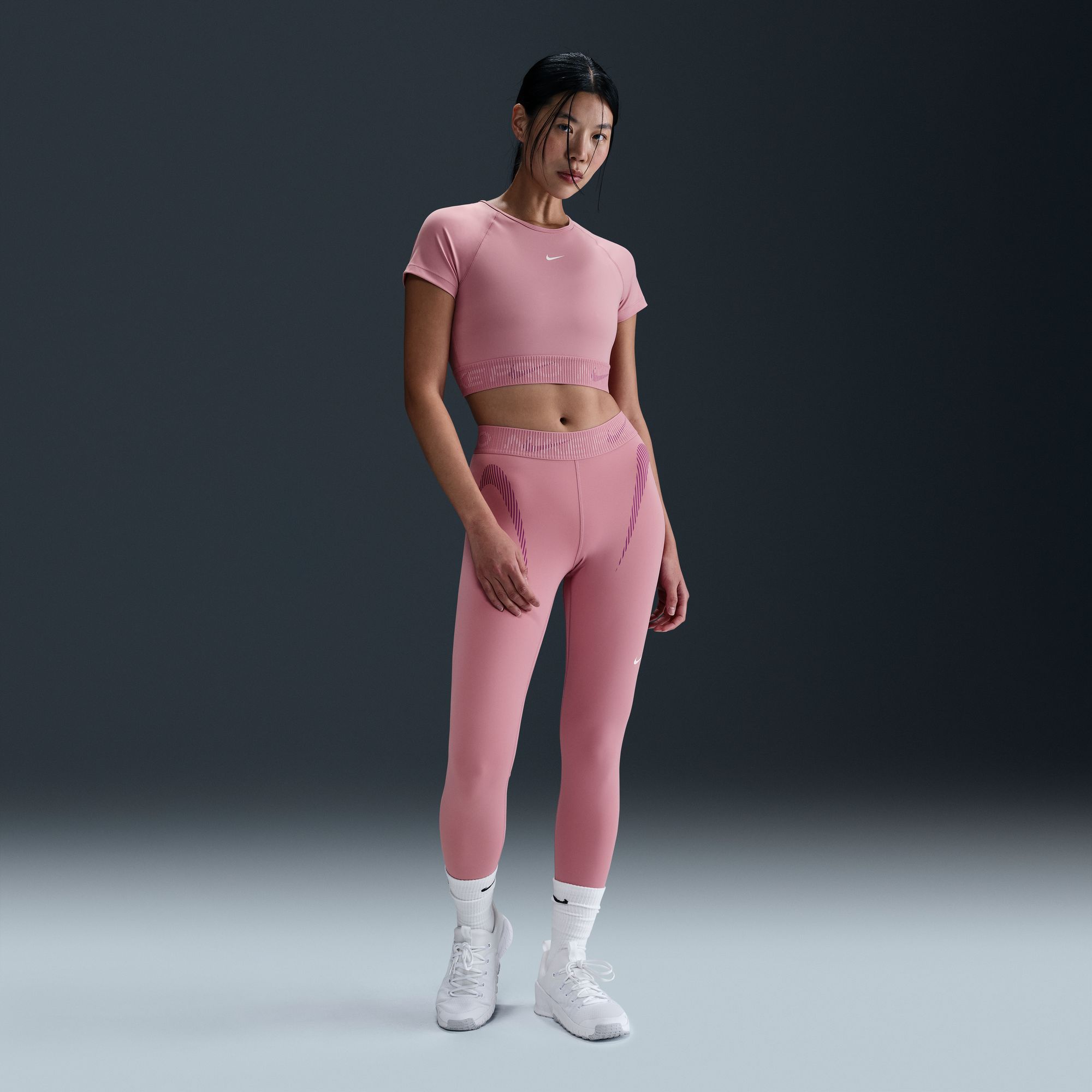 When you look it, you feel it, you do it. Lightweight and stretchy, this smooth quick-drying cropped top keeps you ready to sweat. Its soft elastic hem—with a specialty graphic—holds you snugly so you can go hard feeling limitless.