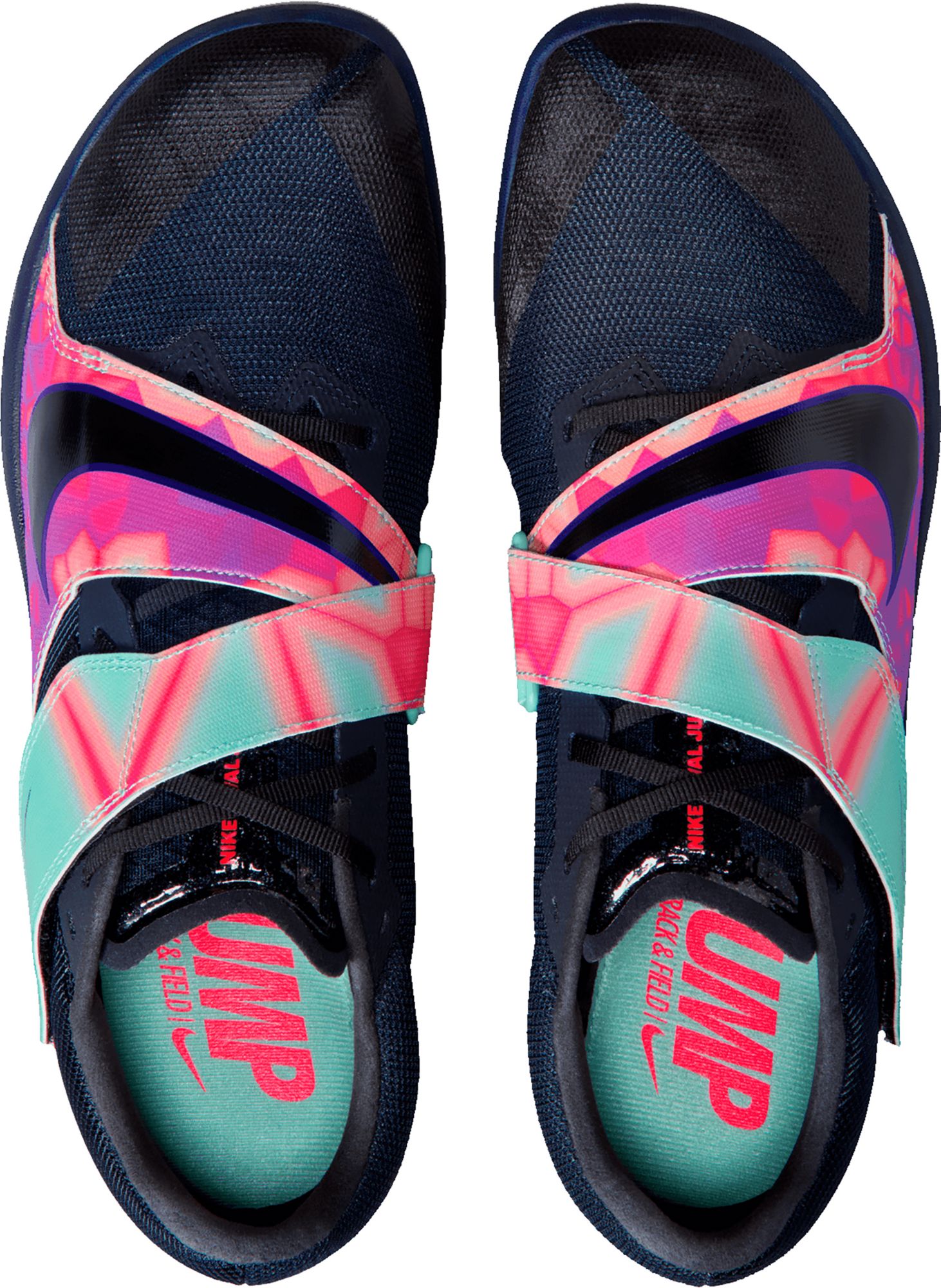 Pop a personal best in spikes specifically designed for jumping events. Forefoot spikes and secondary heel traction give you confidence in wet or dry conditions on various track surfaces and different takeoff boards. A thick, yet lightweight cushioned heel and a wider shoe base help withstand the demands of jumping at full throttle.