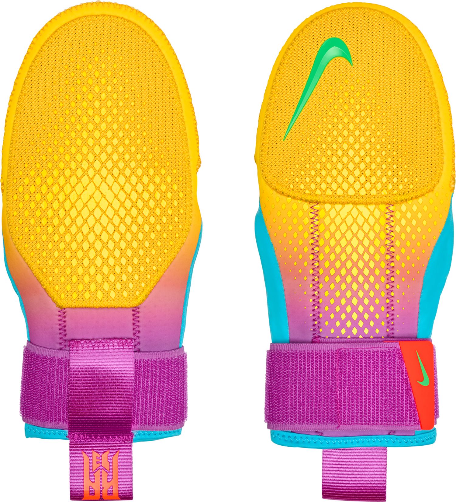 Bought these for my son and he loves them. I bought him an Aria mitt and this one for his brithday and he prefers the Nike Acuna sliding mitt. The material is not "fuzzy/felty" like the aria mitt, but rather more like a performance type of material. There are removable metal braces on the palm side as well as the back side for protection and support. I think it's cool that you can remove one or the other depending on how stiff or flexible you like it... He's played a dozen or so games so far and really likes it and it's holding up quite well