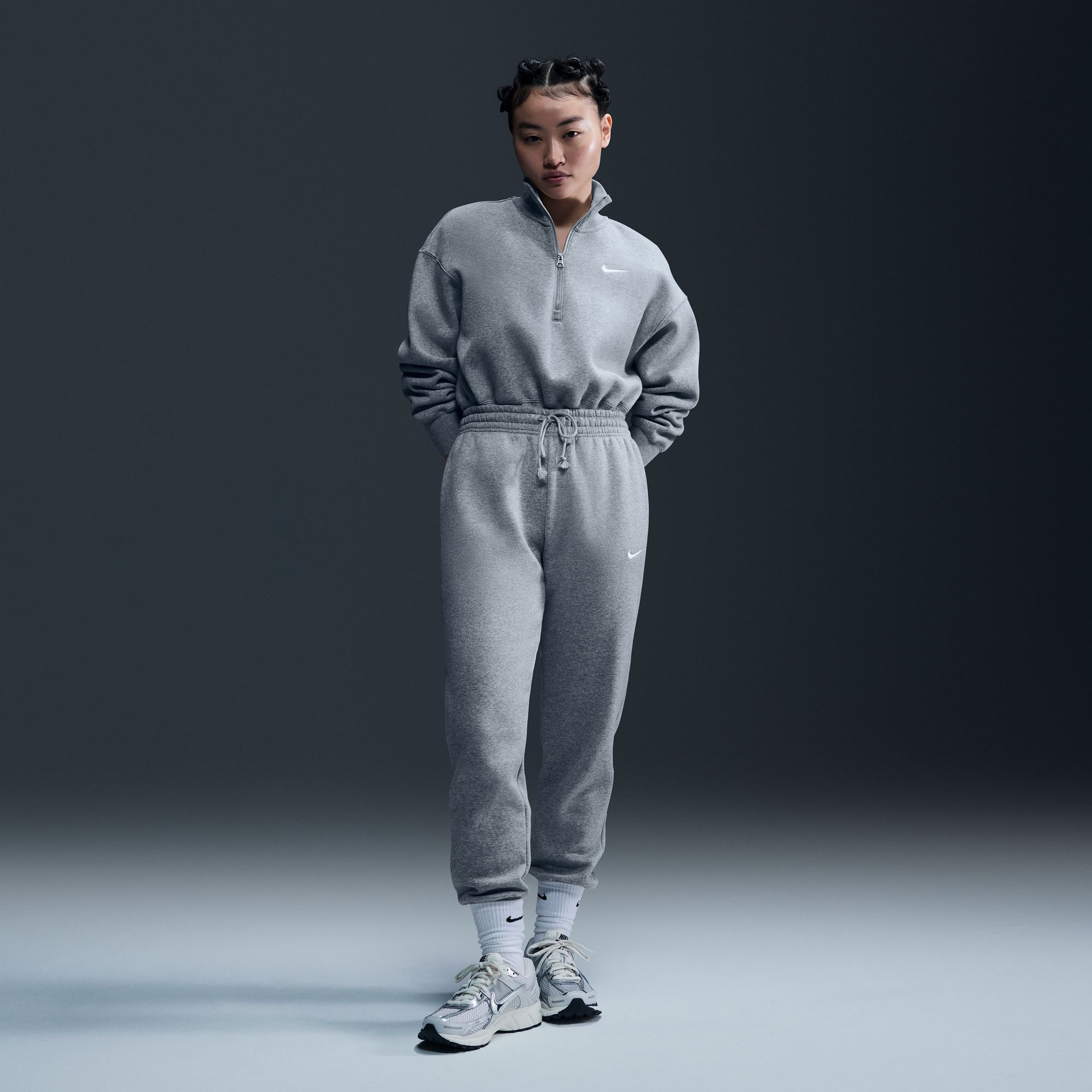 Grounded in style, comfort and versatility, meet Nike's take on luxury loungewear. This 1/2-zip sweatshirt is cropped for a trend-right look, while taller ribbing at the hem, cuffs and collar adds structure to the overall fit. Made from midweight fleece, it's sure to be one of your new cold-weather favorites.