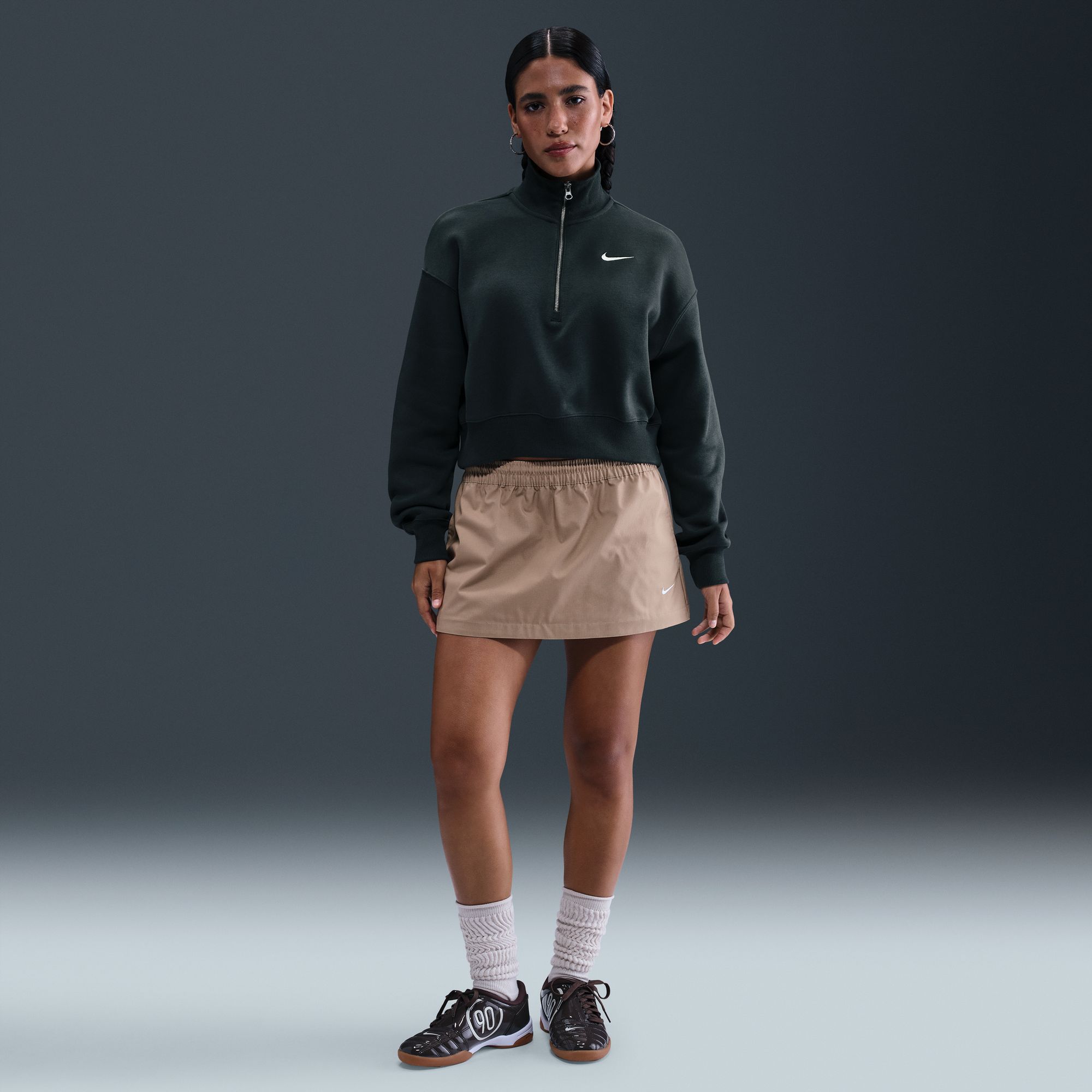 Grounded in style, comfort and versatility, meet Nike's take on luxury loungewear. This 1/2-zip sweatshirt is cropped for a trend-right look, while taller ribbing at the hem, cuffs and collar adds structure to the overall fit. Made from midweight fleece, it's sure to be one of your new cold-weather favorites.