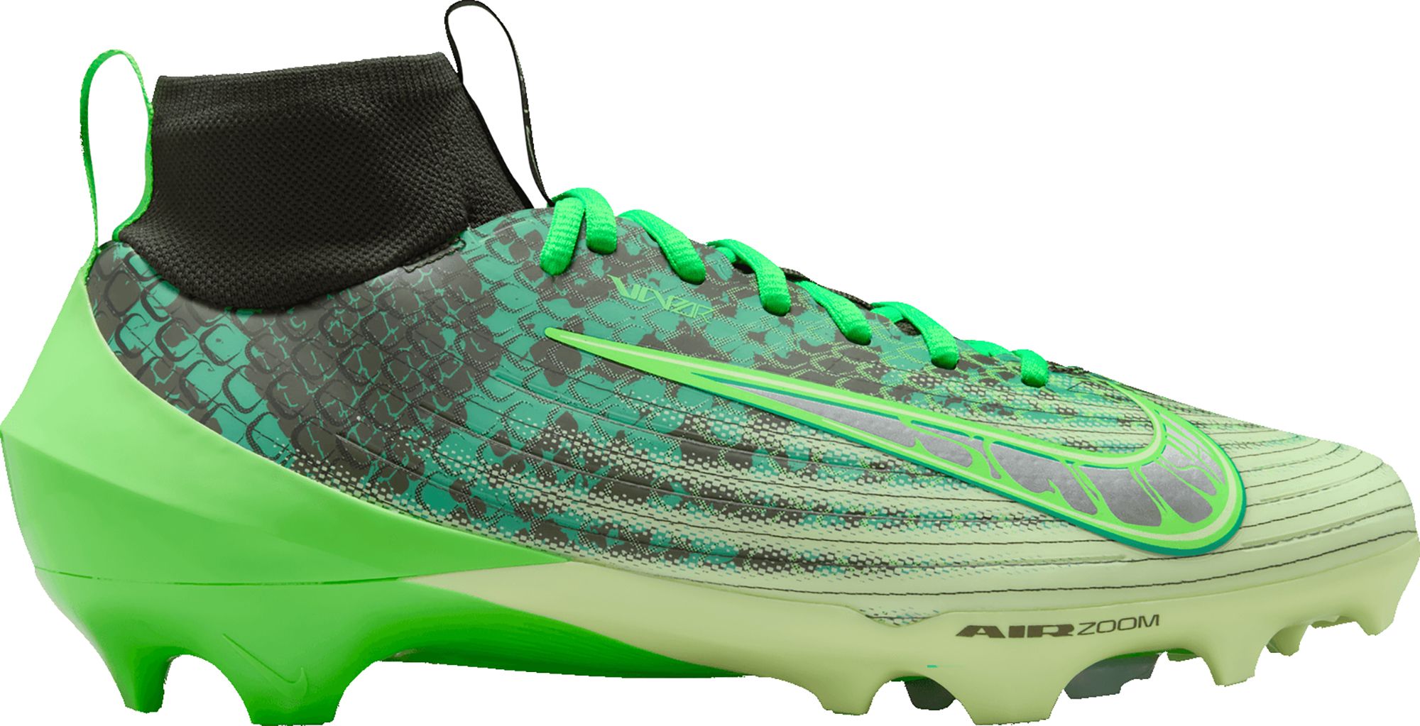 For the skill guy who makes his second home in the end zone, or the defender who covers swaths of grass with one press of the turbo button, there’s the Vapor Pro 1. Air Zoom on top of the plate offers big-time burst. A new, full-length speed plate acts as a sort of springboard when racing down an opponent or opening up in the open field. And the lightweight upper helps give this cleat a sort disappearing feel on your foot.