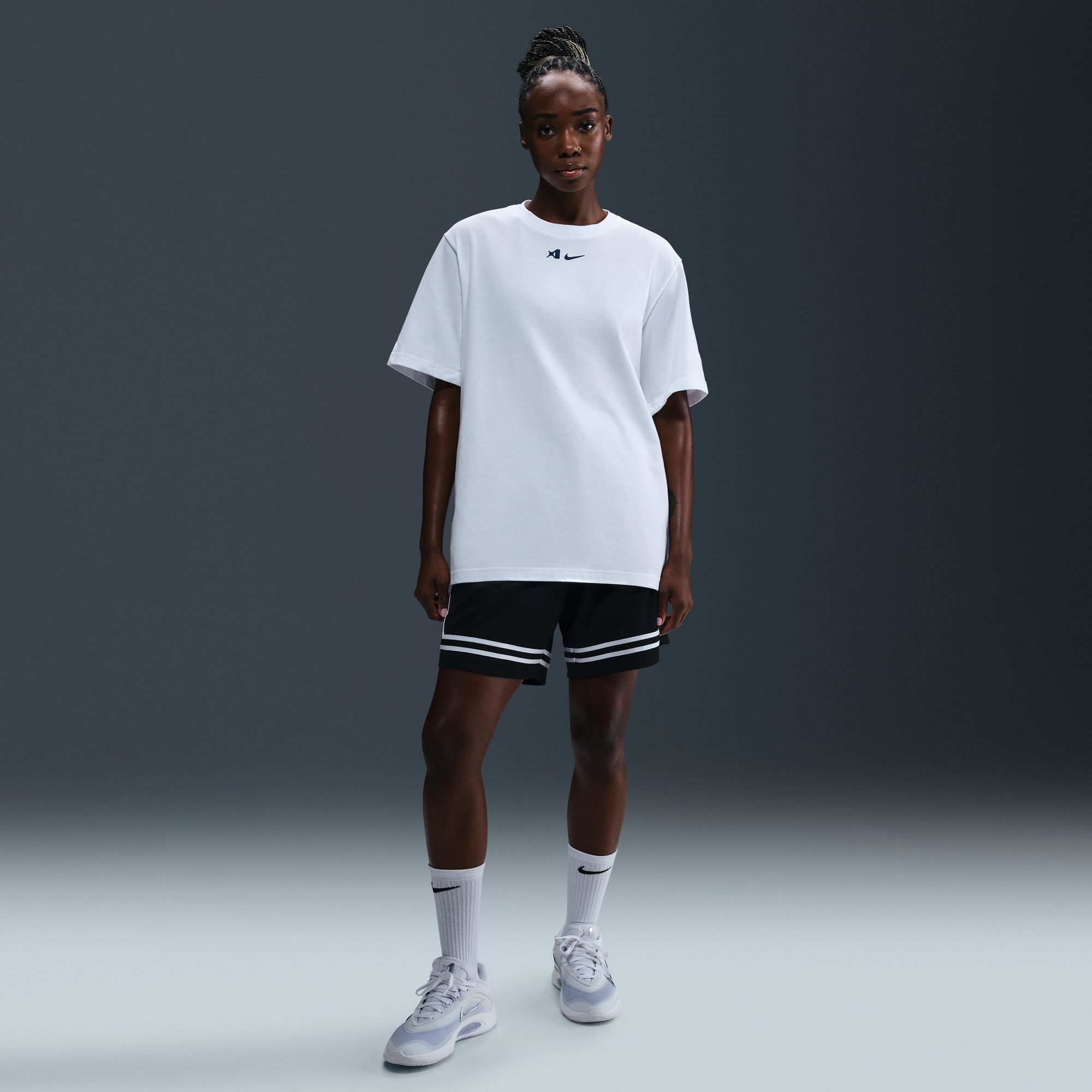 Unapologetic comfort meets unapologetic attitude. With structured, heavyweight cotton and a roomy fit, this tee honors the strength of A'ja's game.