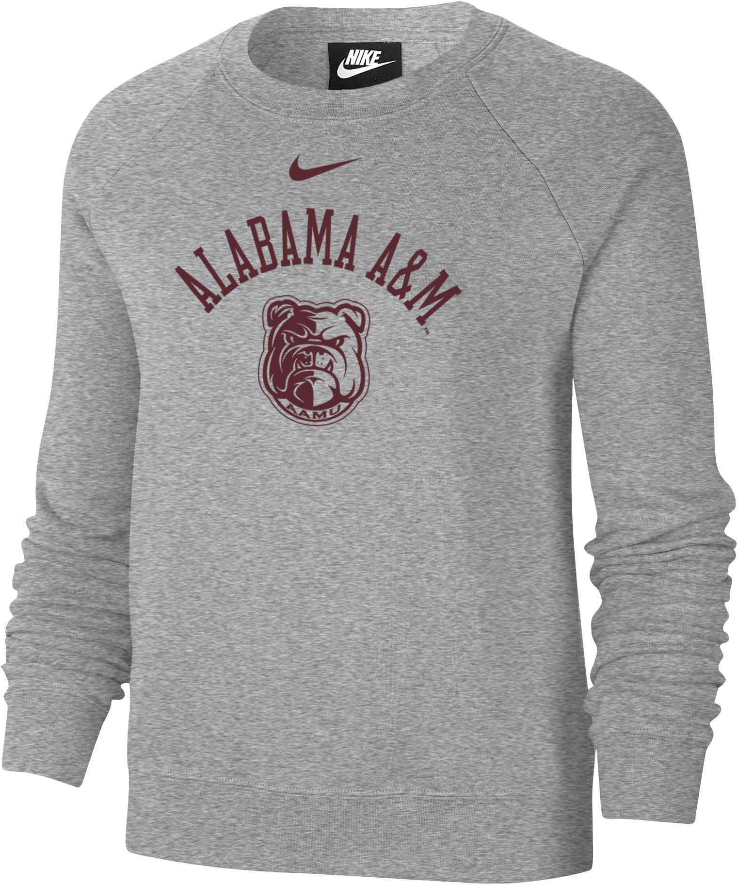Nike Women's Alabama A&M Bulldogs Grey Varsity Arch Logo Crew Neck Sweatshirt