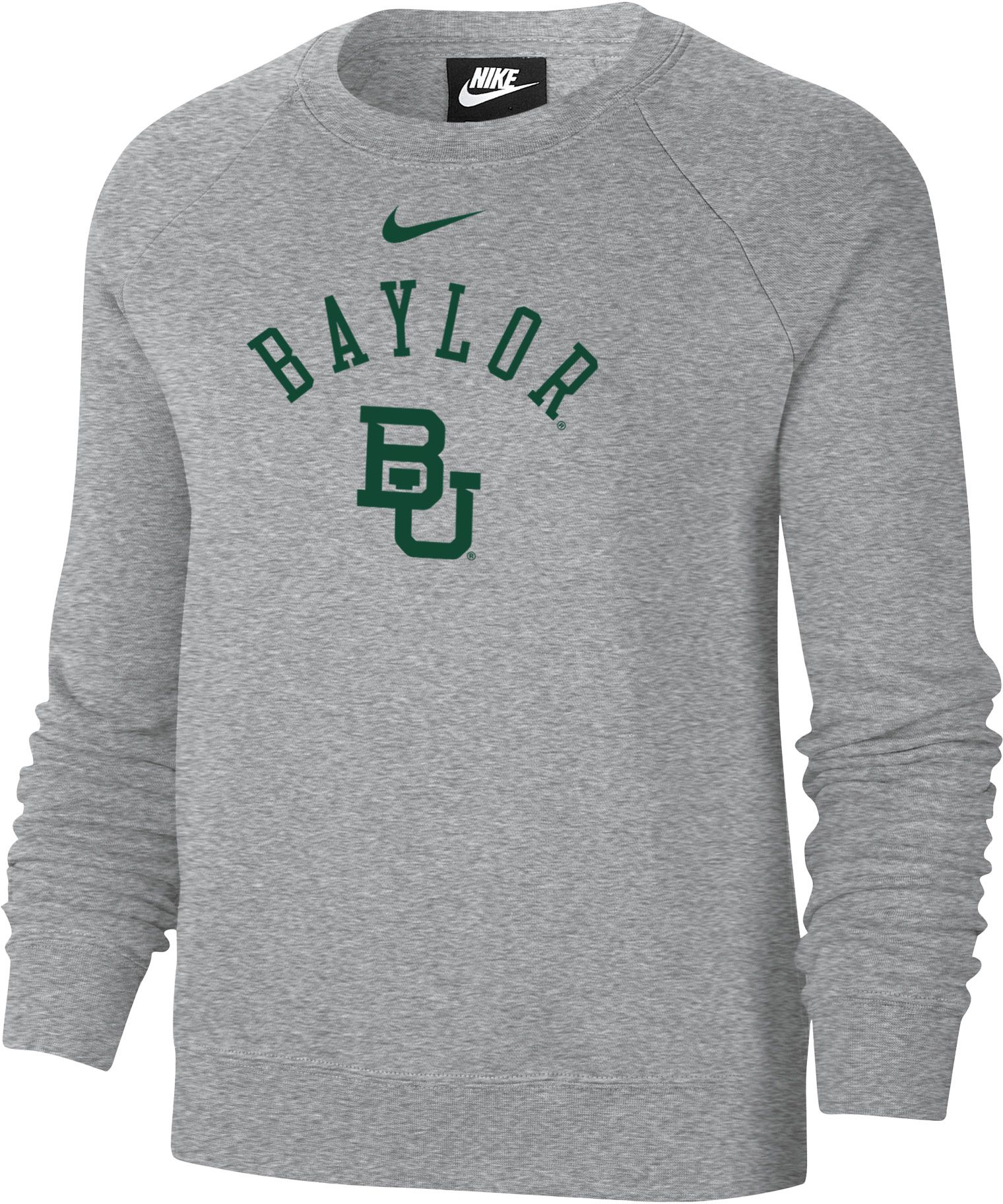 Nike Women's Baylor Bears Grey Varsity Arch Logo Crew Neck Sweatshirt
