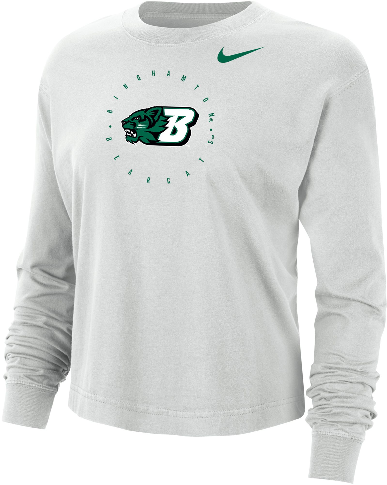 Nike Women's Binghamton Bearcats Grey Boxy Cropped Long Sleeve T-Shirt