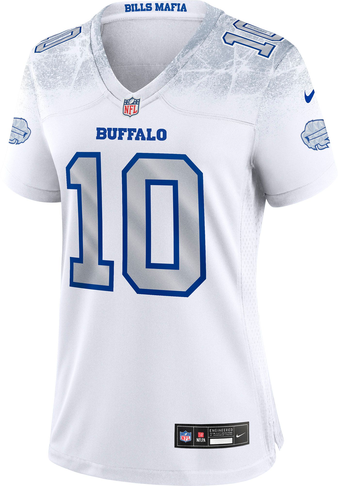 • Lake-effect Looks: Exclusive whiteout palette and iced-out numbers and Bills logo on the sleeve