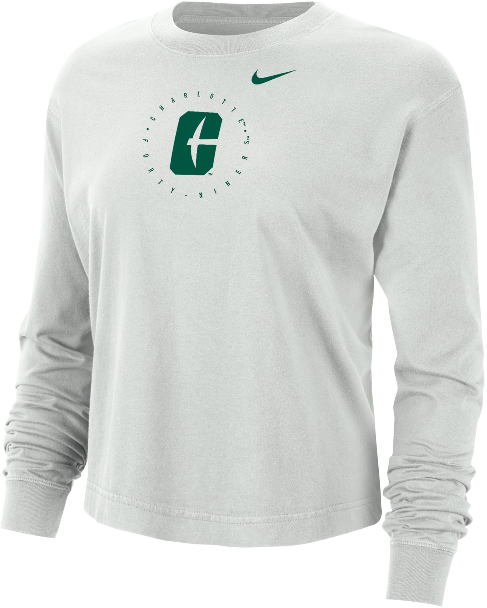 Nike Women's Charlotte 49ers Grey Boxy Cropped Long Sleeve T-Shirt