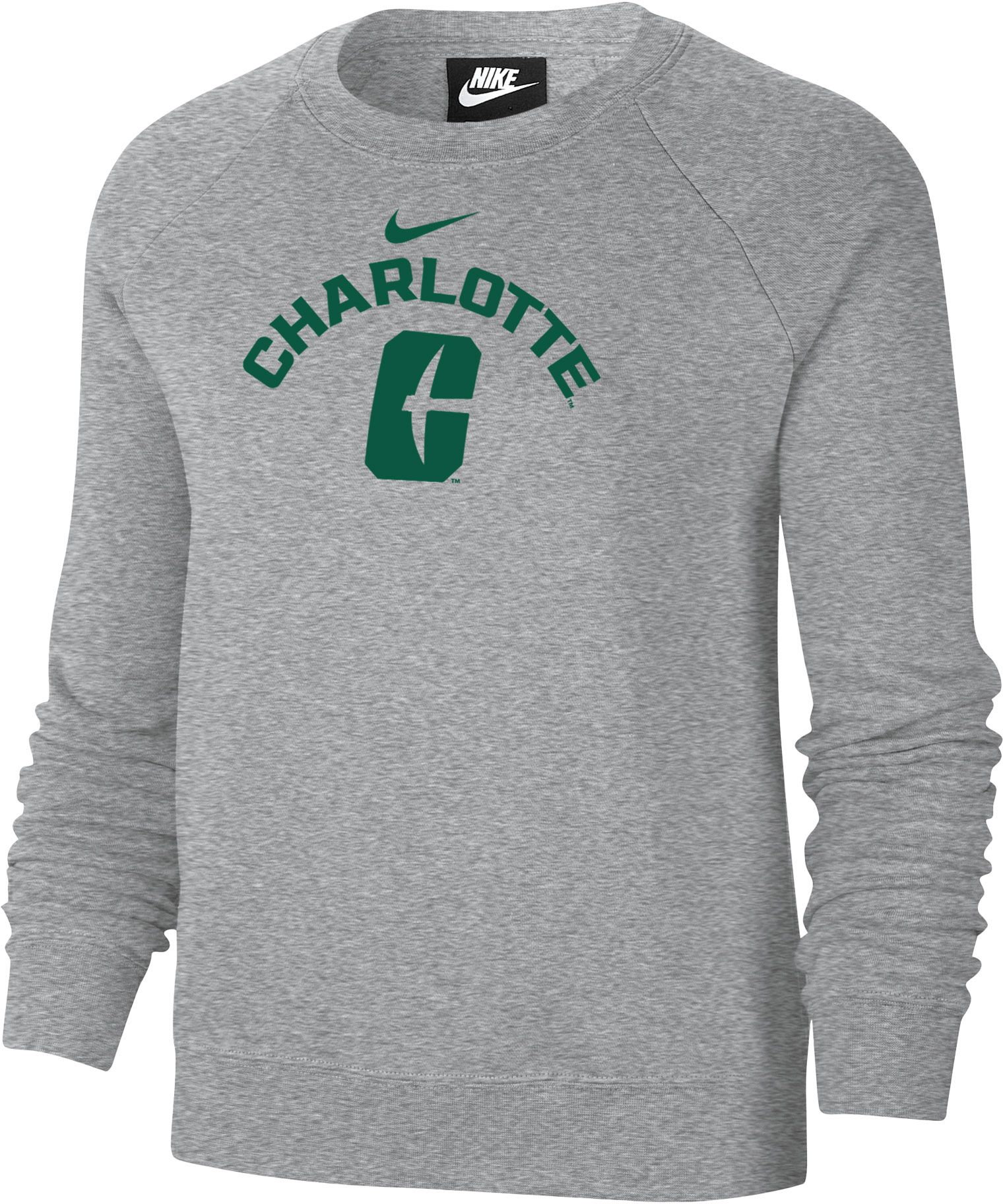 Nike Women's Charlotte 49ers Grey Varsity Arch Logo Crew Neck Sweatshirt